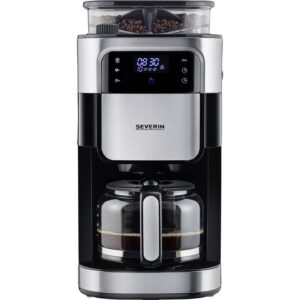 Severin KA 4813 Kaffeemaschine Schwarz, Edelstahl (gebürstet) Fassungsvermögen Tassen=10 Display, Glaskanne, mit Mahlwer