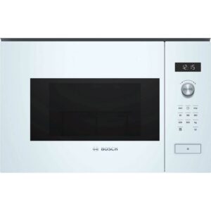 Die Bosch Serie 6 Einbau-Mikrowelle BFL524MW0 ist eine praktische Lösung für moderne Küchen mit begrenztem Platzangebot. Mit ihrer klaren weißen Front und der integrierten Bauweise fügt sie sich harmonisch in 60‑cm-Küchenmöbel ein. Dank intelligenter Automatikprogramme und einfacher Bedienung gelingt das Erwärmen, Auftauen und Garen von Speisen besonders komfortabel.