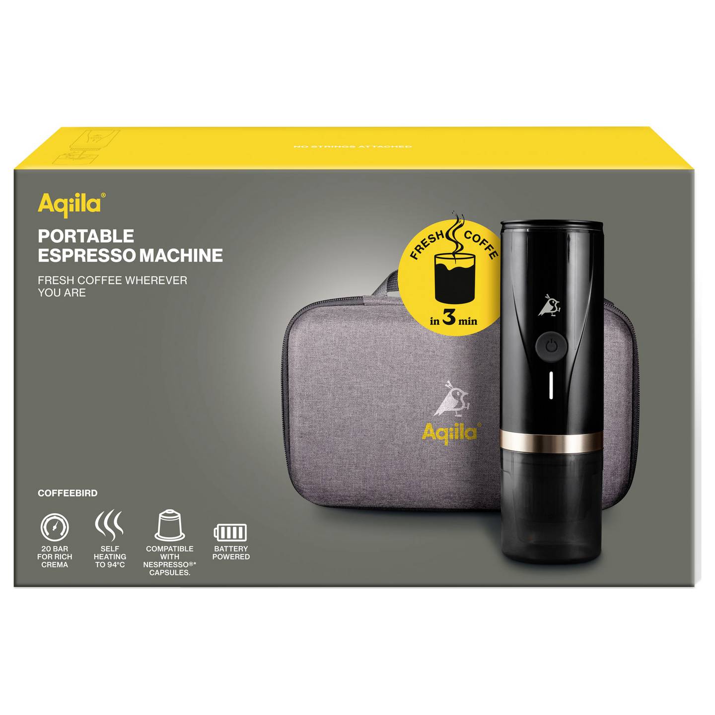 Die Aqiila Coffeebird Portable Espresso-Kaffeemaschine ist die ideale Lösung für alle, die auch unterwegs nicht auf frisch gebrühten Espresso verzichten möchten. Dank ihres kompakten Designs und des leistungsstarken Akkus bereitet sie jederzeit aromatischen Kaffee zu – egal ob beim Camping, auf Reisen oder im Büro. Mit kräftigem Druck und schneller Aufheizfunktion sorgt sie überall für echten Espresso-Genuss.