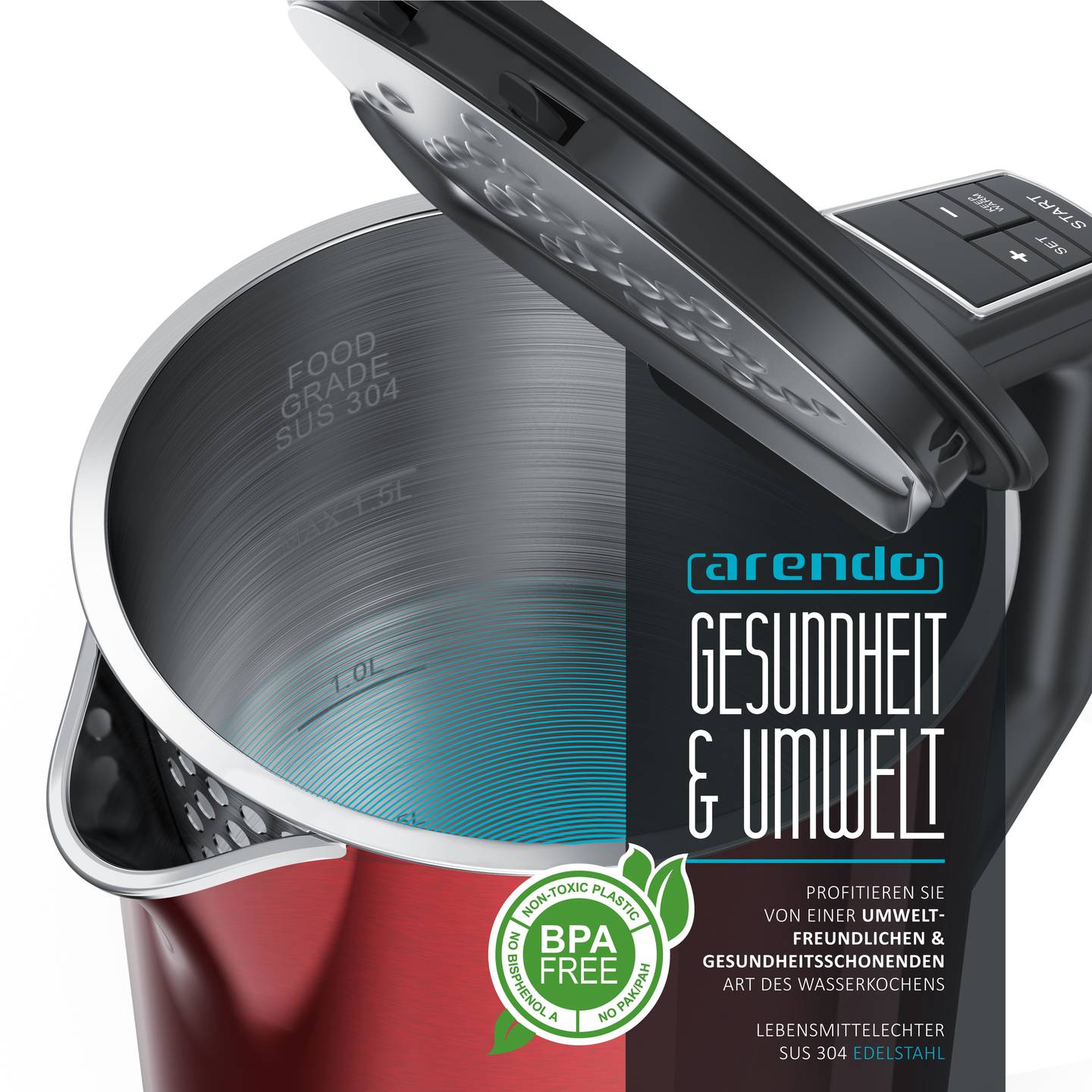 Arendo Wasserkocher aus Edelstahl mit Temperaturwahl und Doppelwand – 1,5 l