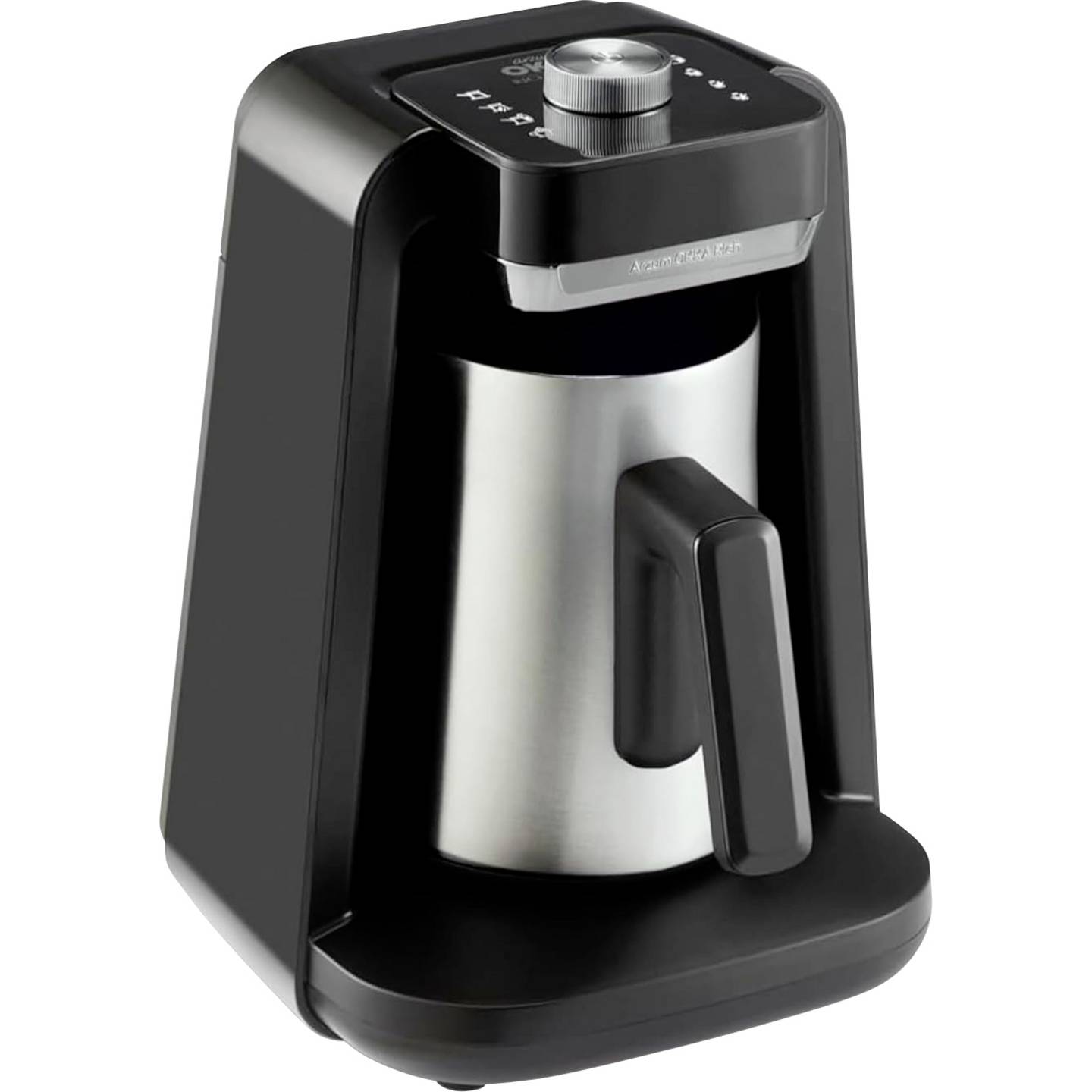 Mit der Arzum Espressokanne mit Milchaufschäumer genießen Sie vielfältige Kaffeespezialitäten auf Knopfdruck. Das Gerät ermöglicht die schnelle Zubereitung von bis zu fünf Tassen aromatischem Kaffee und eignet sich besonders für die traditionelle Zubereitung von türkischem Kaffee. Dank des integrierten Milchaufschäumers lassen sich zudem cremige Milchgetränke wie Latte oder Cappuccino ganz einfach herstellen. Die leistungsstarke 700-Watt-Technologie sorgt für eine gleichmäßige und effiziente Zubereitung, während das elegante Bronze-Finish der Maschine einen stilvollen Akzent in jeder Küche setzt. Durch das kompakte Design und die einfache Handhabung wird die Kaffeemaschine schnell zum unverzichtbaren Begleiter für den täglichen Kaffeegenuss.