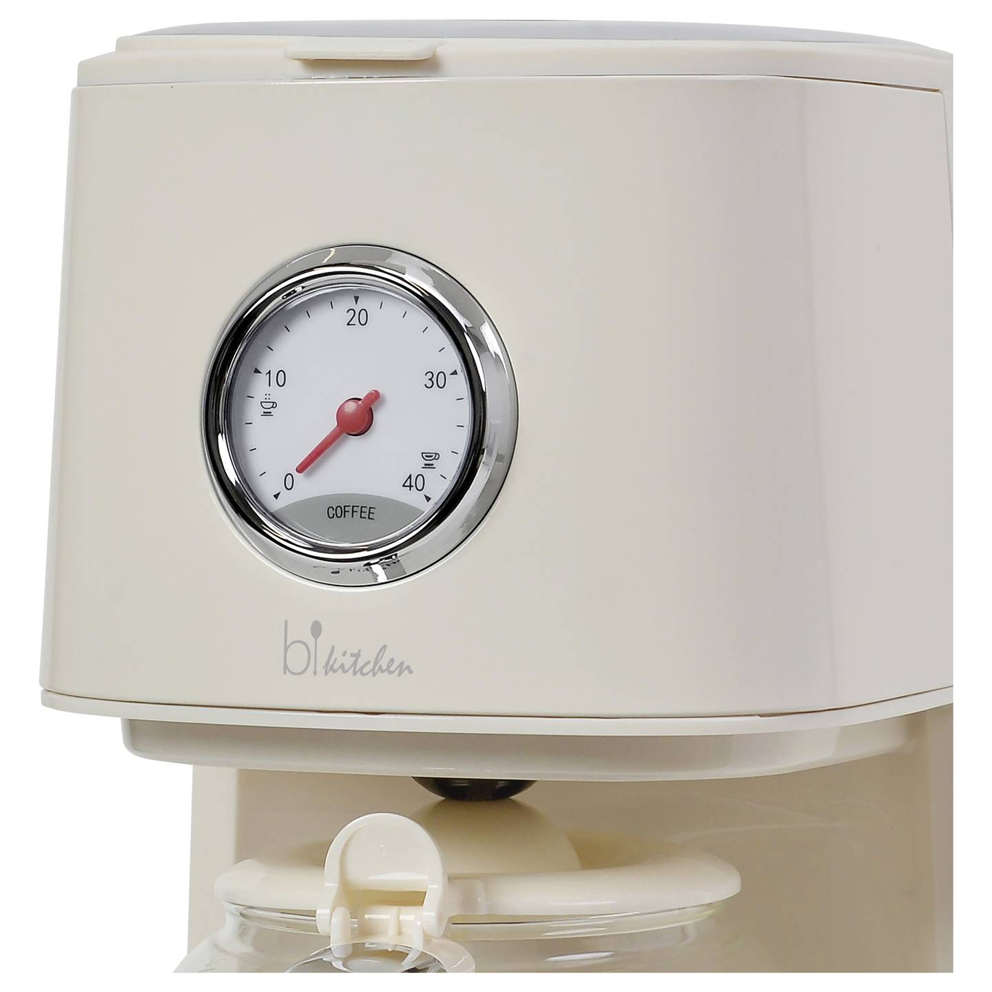 Die BiKitchen nostalgia 150 Kaffeemaschine verbindet klassisches Retro-Design mit moderner Funktionalität. Mit ihrem eleganten cremeweißen, glänzenden Gehäuse wird sie zum stilvollen Blickfang in jeder Küche. Dank der großzügigen Kapazität eignet sie sich ideal für Familien, Büros oder alle, die mehrere Tassen Kaffee auf einmal genießen möchten.