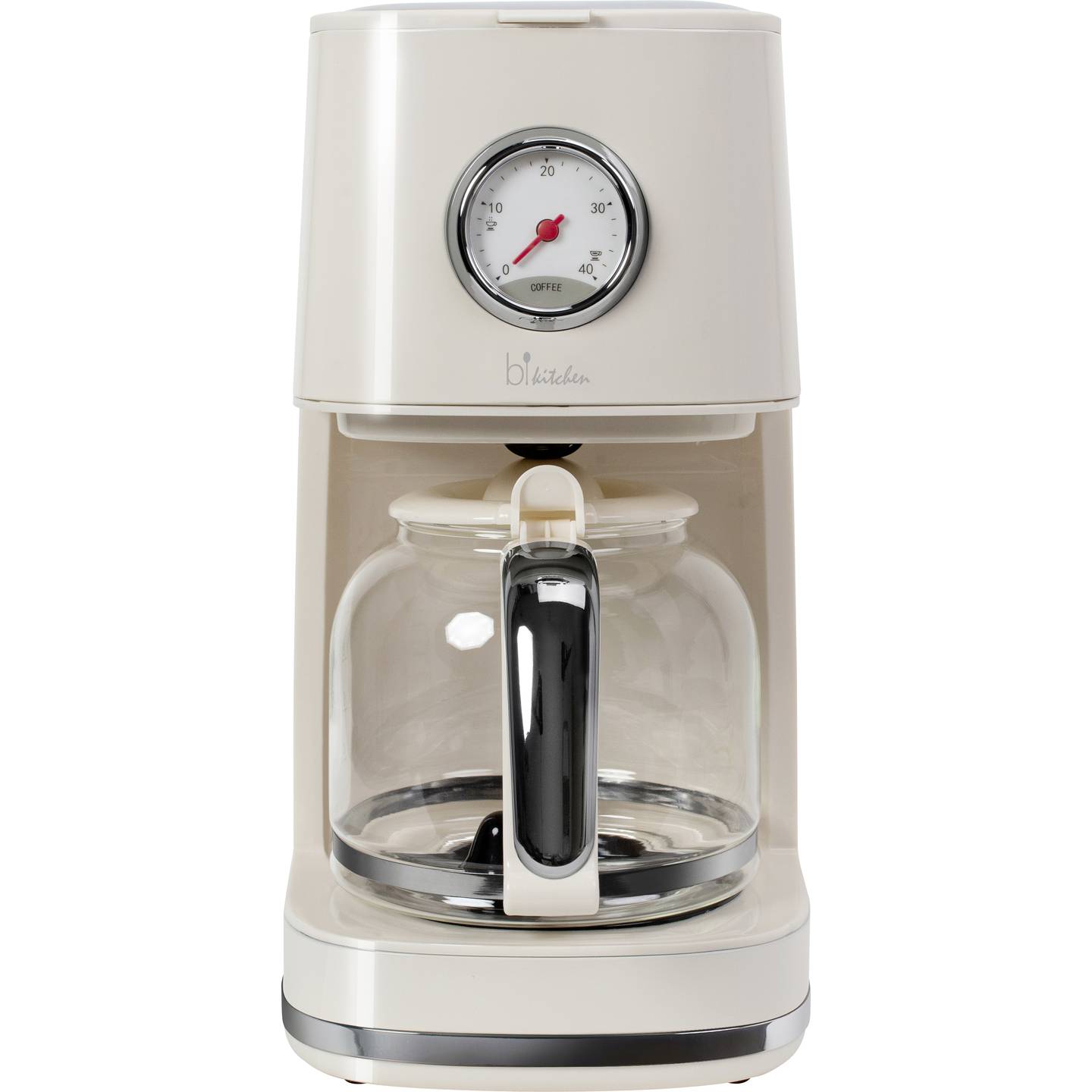 Die BiKitchen nostalgia 150 Kaffeemaschine kombiniert stilvolle Retro-Optik mit zuverlässiger Technik für den täglichen Kaffeegenuss. Mit einer Leistung von 900 Watt bereitet sie aromatischen Filterkaffee schnell und effizient zu. Die integrierte Warmhaltefunktion sorgt dafür, dass der frisch gebrühte Kaffee auch nach dem Aufbrühen angenehm heiß bleibt. Dank der praktischen Glaskanne lässt sich der Kaffee bequem servieren, während der Füllstand jederzeit sichtbar ist.