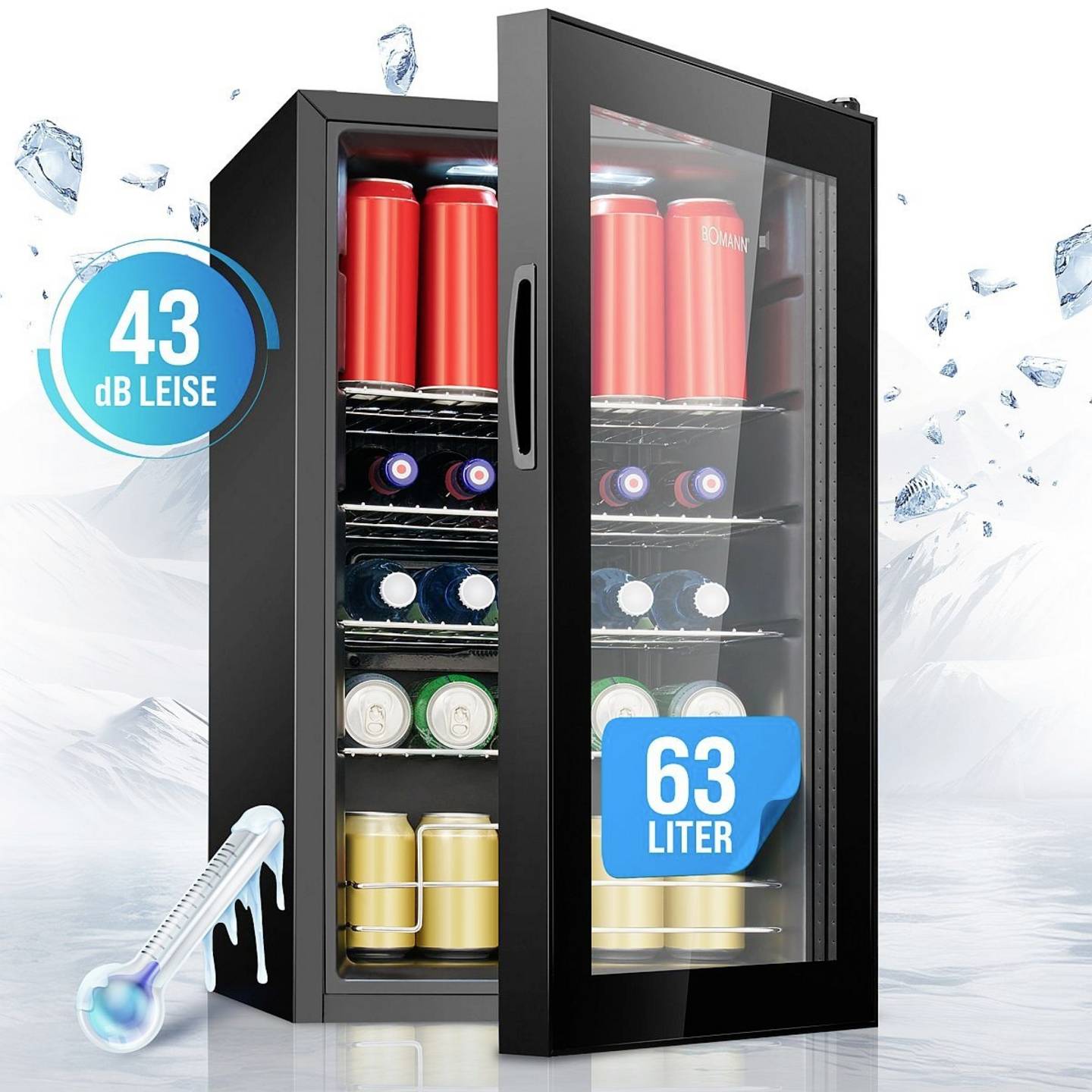 - 63 Liter Nutzinhalt – ideal für Getränke, Snacks und kleine Vorräte