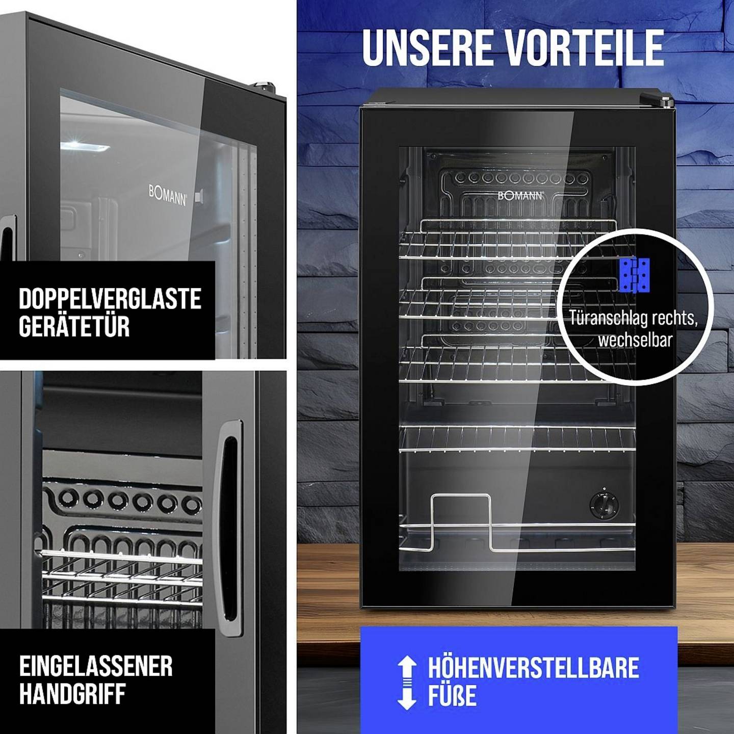 - Elegante, doppelverglaste Glastür für eine ansprechende Präsentation