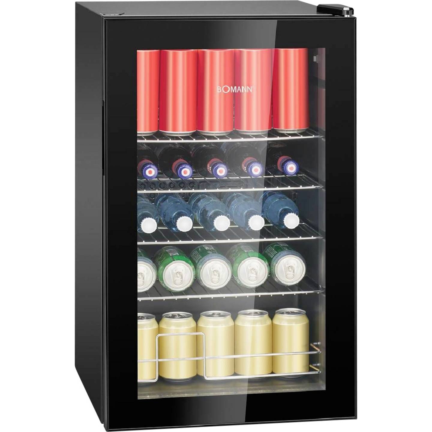 Der Bomann KSG 7287 ist ein kompakter Kühlschrank mit stilvoller Glastür, der sich ideal für kleine Räume, Büros, Partykeller oder Hotelzimmer eignet. Mit seinem modernen schwarzen Design und der übersichtlichen Innenaufteilung sorgt er für eine attraktive Präsentation von Getränken und Snacks. Dank seiner kompakten Bauweise lässt sich das Standgerät flexibel platzieren.
