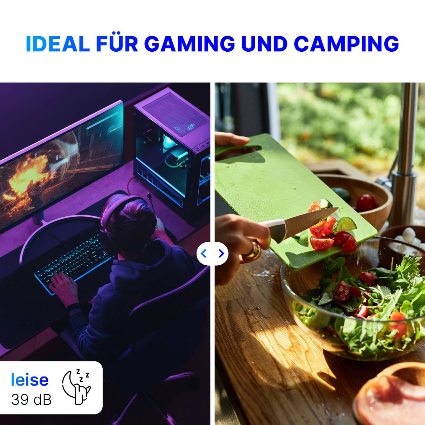 - Leiser Betrieb mit nur 39 dB – ideal für Büro oder Schlafzimmer
