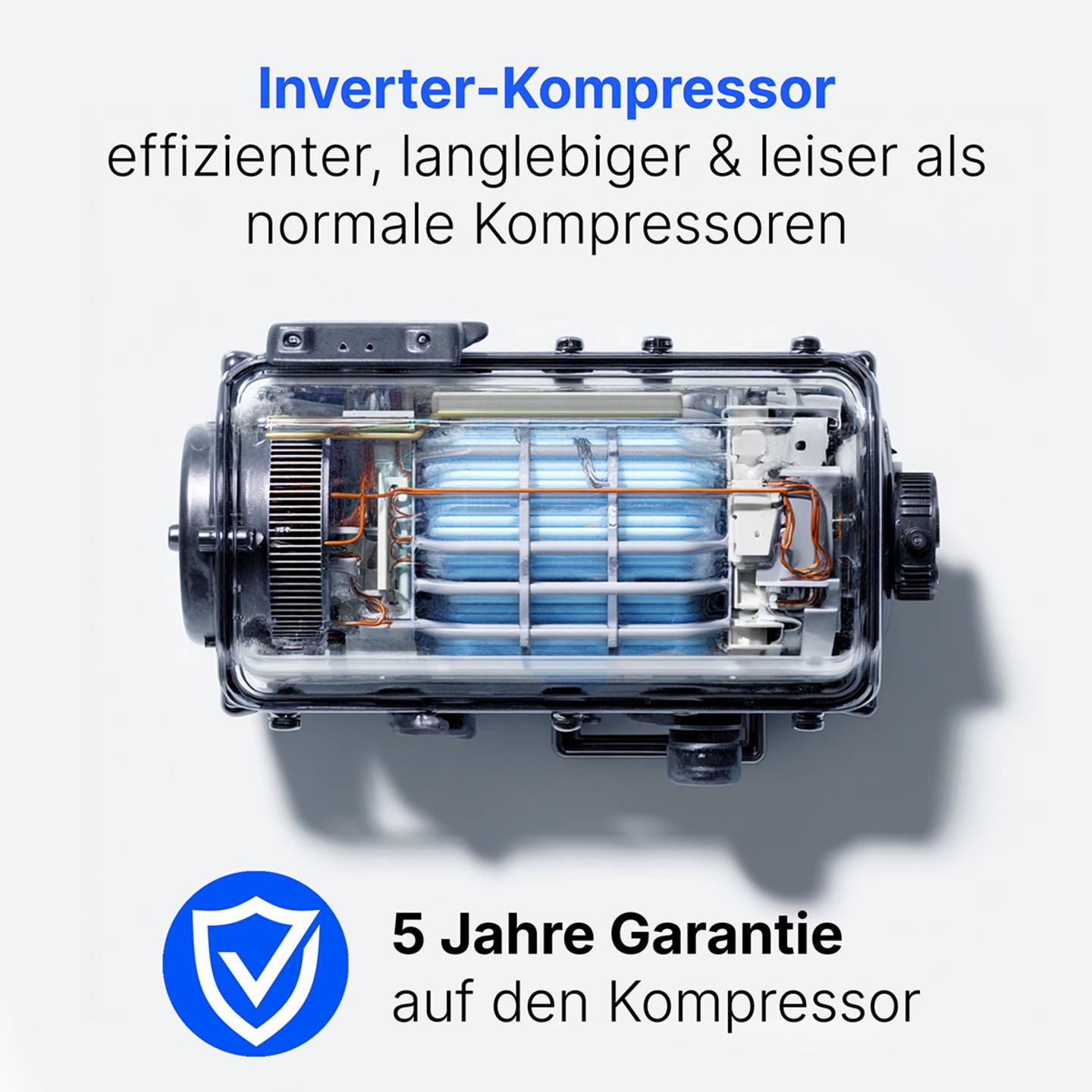 - Energieeffizienter Inverter-Kompressor mit 5 Jahren Garantie