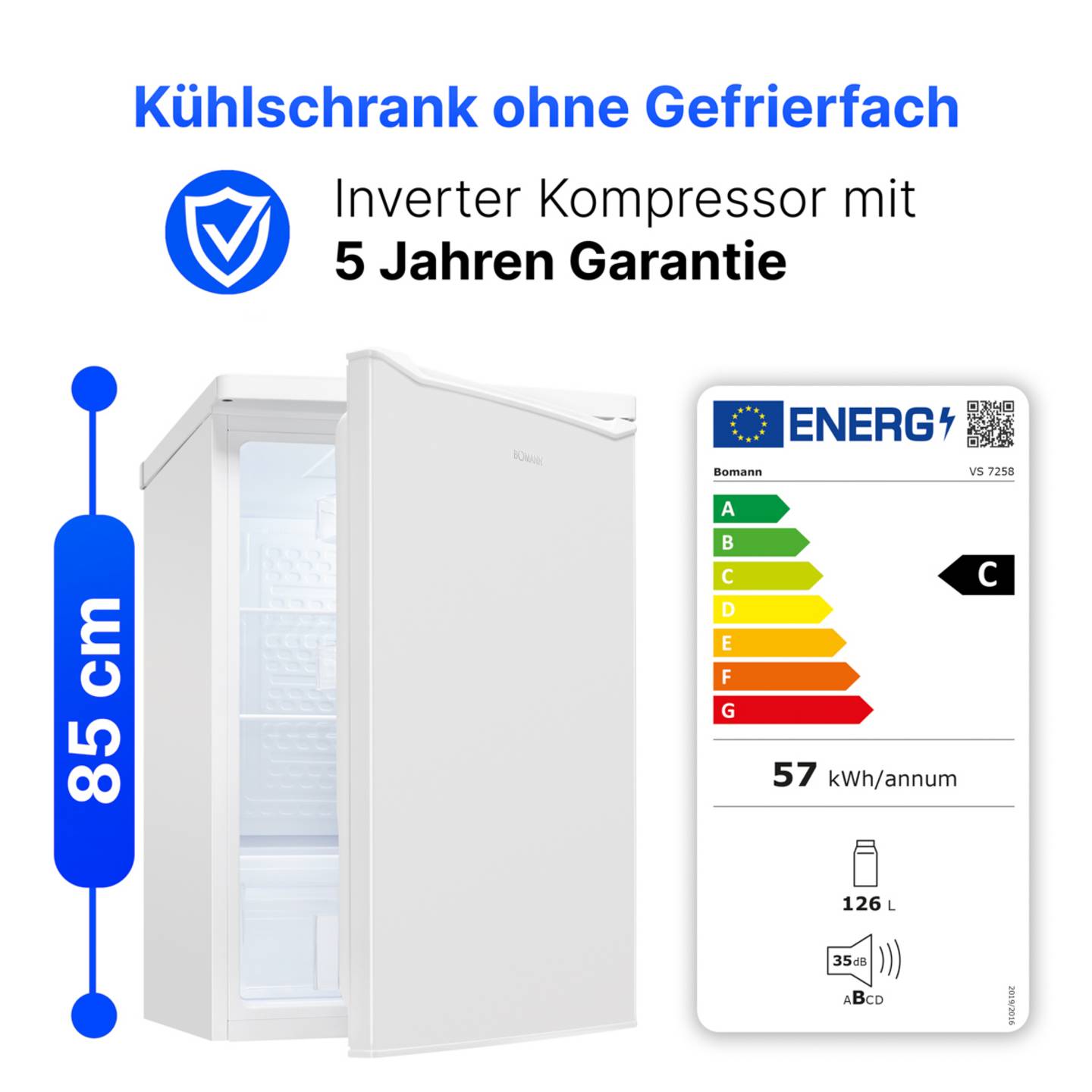Der Bomann VS 7258 Vollraumkühlschrank ist die ideale Lösung für Haushalte, Büros oder Ferienwohnungen, in denen ein zuverlässiger und platzsparender Kühlschrank gefragt ist. Mit seinem Nutzinhalt von 126 Litern bietet er ausreichend Platz für frische Lebensmittel und Getränke. Die moderne LED-Innenbeleuchtung, flexible Ablagen und ein effizienter Inverter-Kompressor sorgen für komfortable Nutzung und langlebige Kühlleistung.