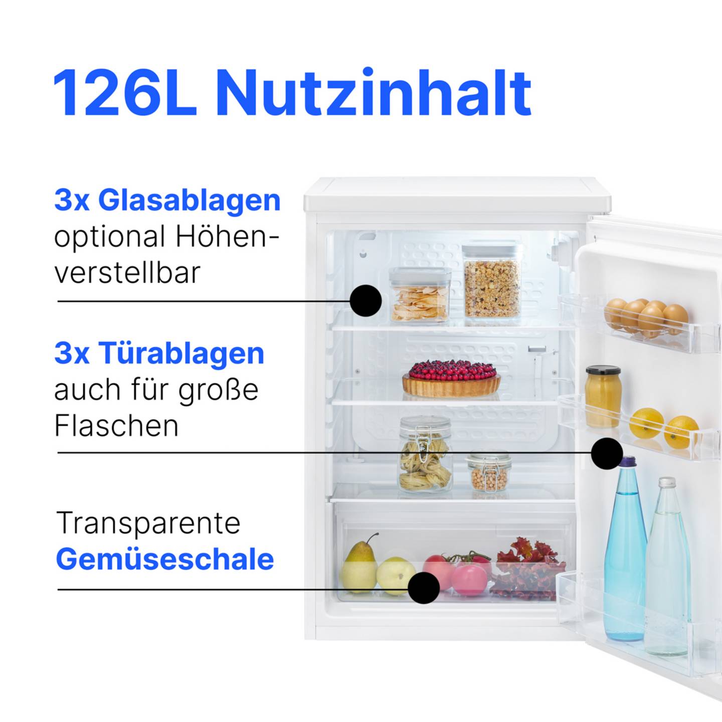 - 126 Liter Nutzinhalt für übersichtliche Aufbewahrung von Lebensmitteln