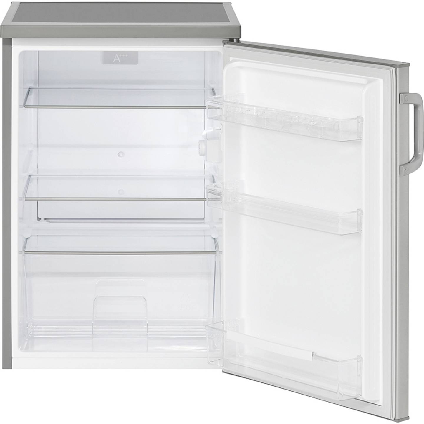 Über das stufenlos regulierbare Thermostat lässt sich die Temperatur individuell einstellen, sodass Lebensmittel stets optimal gekühlt werden. Der wechselbare Türanschlag ermöglicht eine flexible Anpassung an verschiedene Raumkonzepte, während die verstellbaren Standfüße für einen sicheren und stabilen Stand sorgen. Mit seiner eleganten Edelstahl-Optik fügt sich der Kühlschrank harmonisch in moderne Küchen, Büros oder kleinere Haushalte ein.