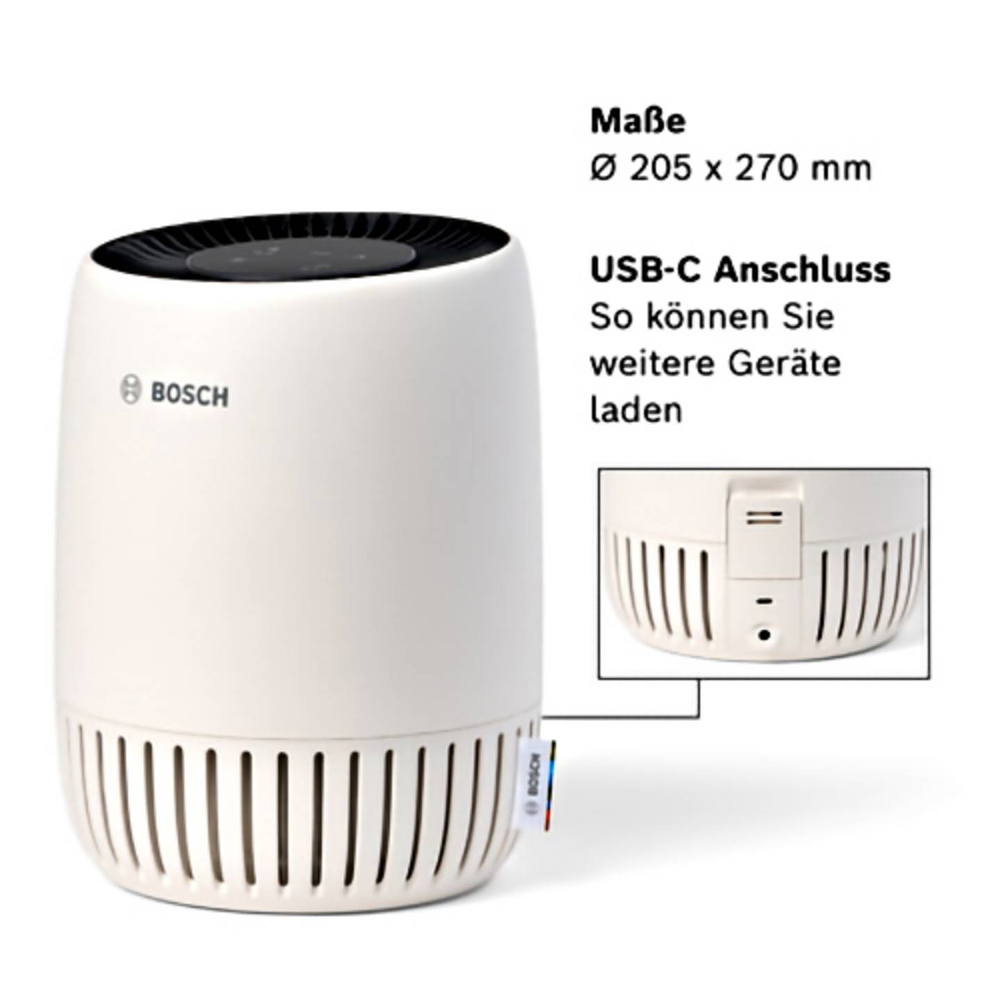 Der Bosch Home Comfort Air 1000 sorgt zuverlässig für frische und saubere Luft in kleineren Räumen wie Schlafzimmern, Büros oder Arbeitsbereichen. Dank seines kompakten Designs und des besonders leisen Betriebs eignet sich der Luftreiniger ideal für den Einsatz auf dem Nachttisch oder Schreibtisch. Das leistungsstarke Filtersystem entfernt effektiv Staub, Pollen, Tierhaare und unangenehme Gerüche aus der Raumluft.
