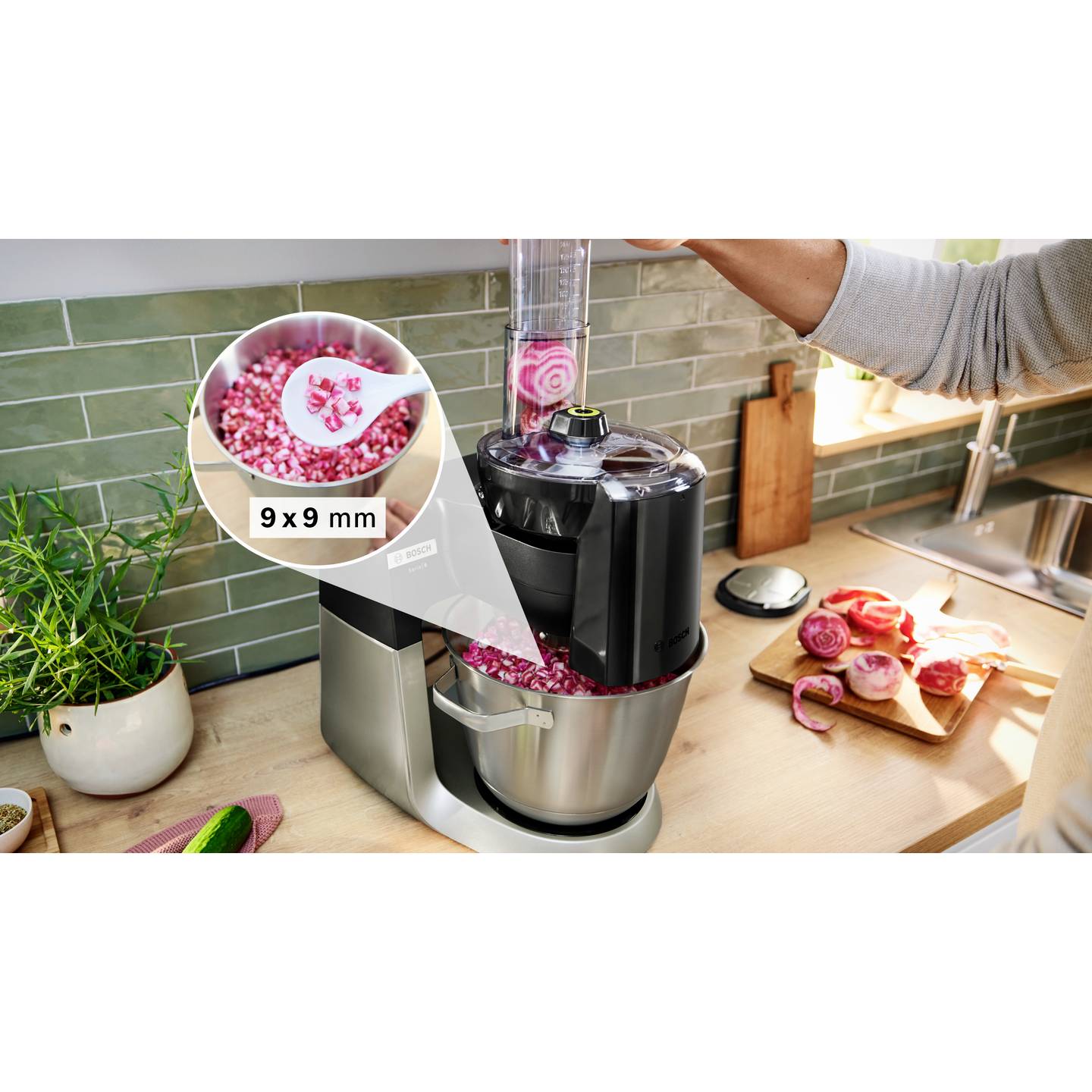 Präziser Würfelschneider für Bosch Küchenmaschinen Serie 6 & 8