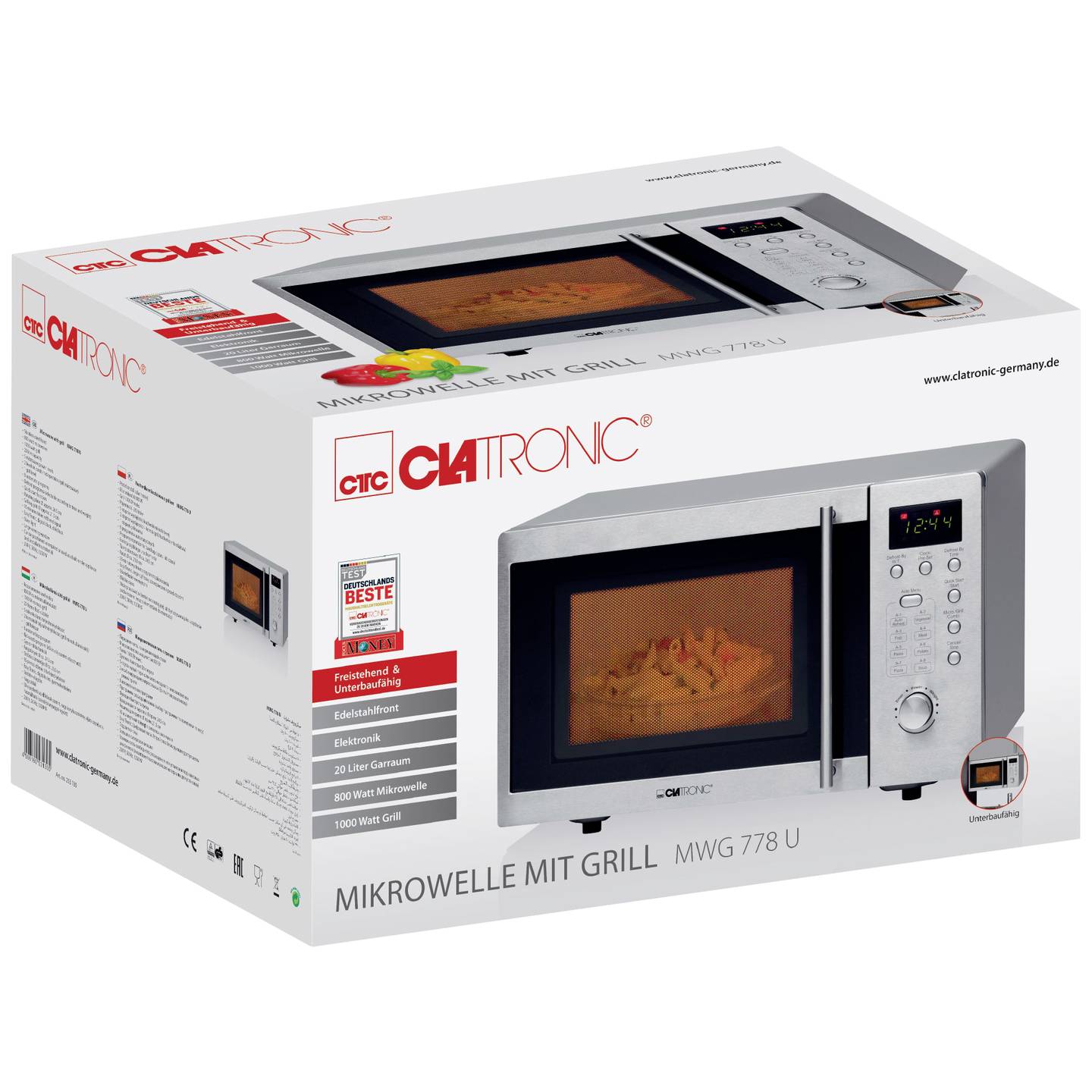 Der Clatronic MWG 778 U Mikrowellenofen kombiniert leistungsstarke Mikrowellenfunktion mit integriertem Grill und sorgt so für schnelles Erwärmen, Garen und Überbacken Ihrer Speisen. Mit seinem großzügigen 20-Liter-Garraum eignet er sich ideal für den täglichen Einsatz in der Küche. Dank moderner Elektroniksteuerung, Automatikprogrammen und praktischer Unterbaufunktion ist dieses Gerät besonders vielseitig und komfortabel.
