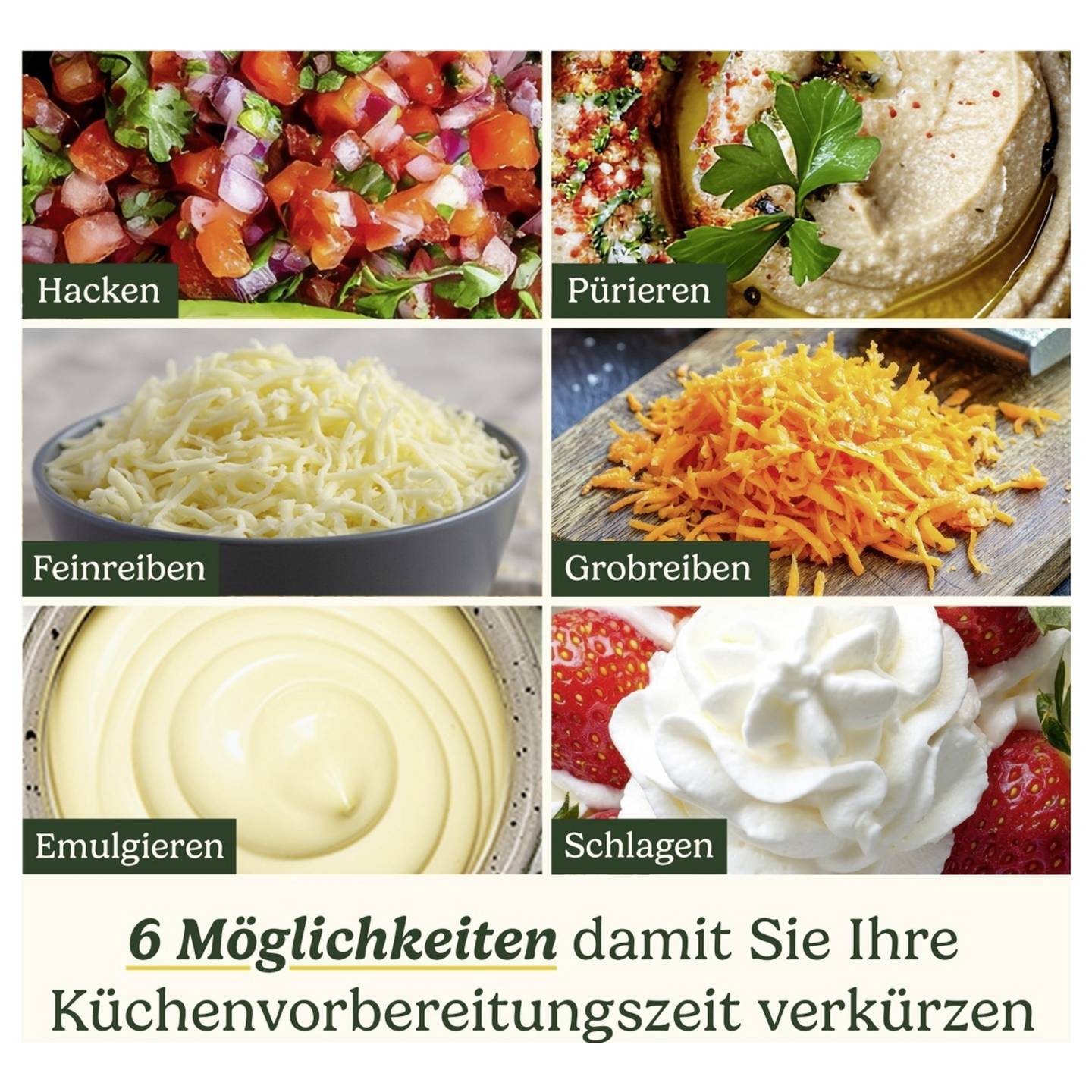 - Vielseitige Funktionen: Hacken, pürieren, raspeln und schlagen in einem Gerät