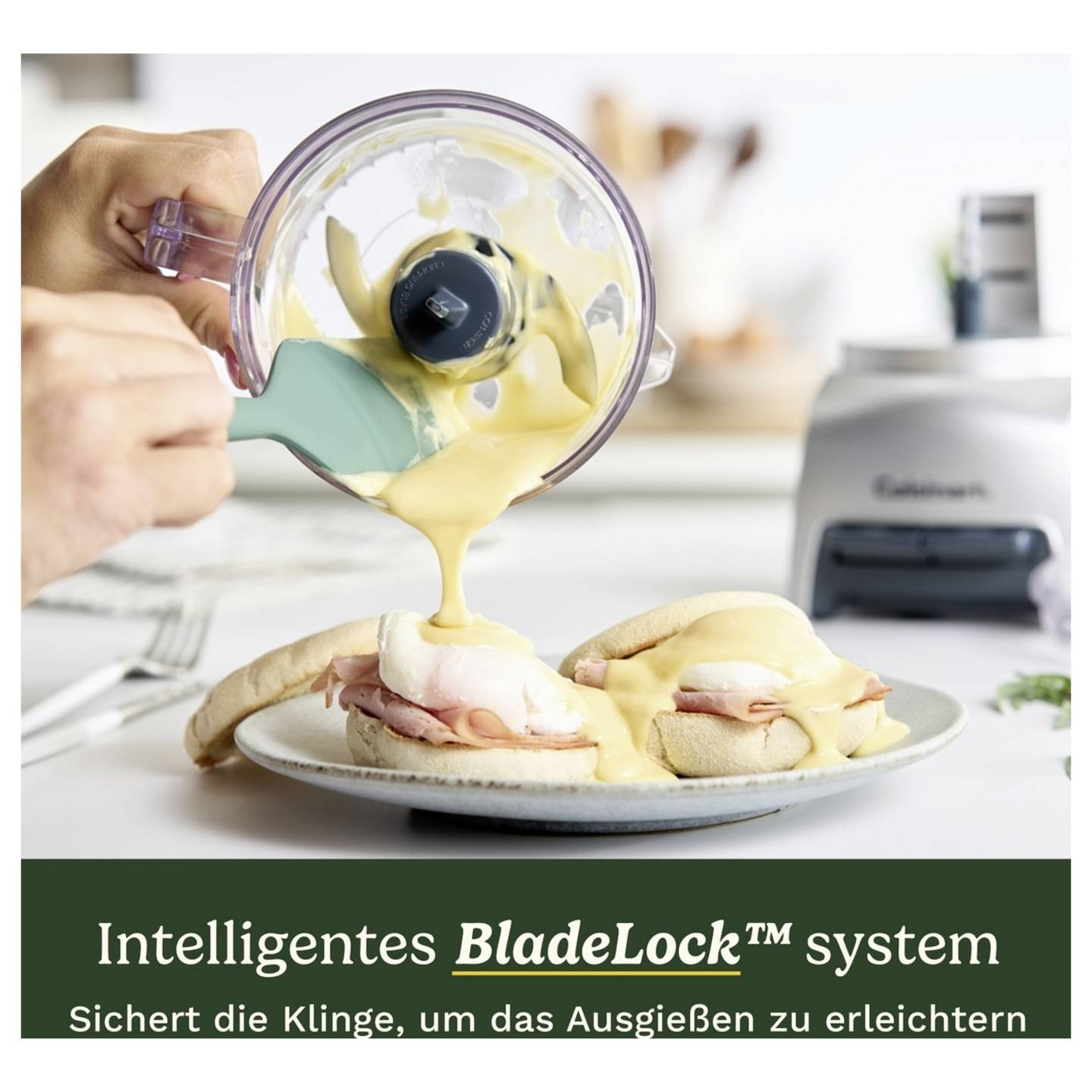 - BladeLock™-System hält die Klinge beim Ausgießen sicher in Position