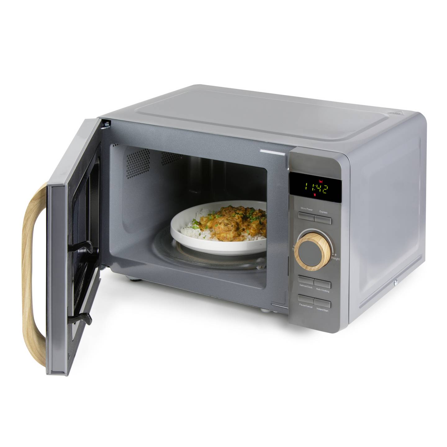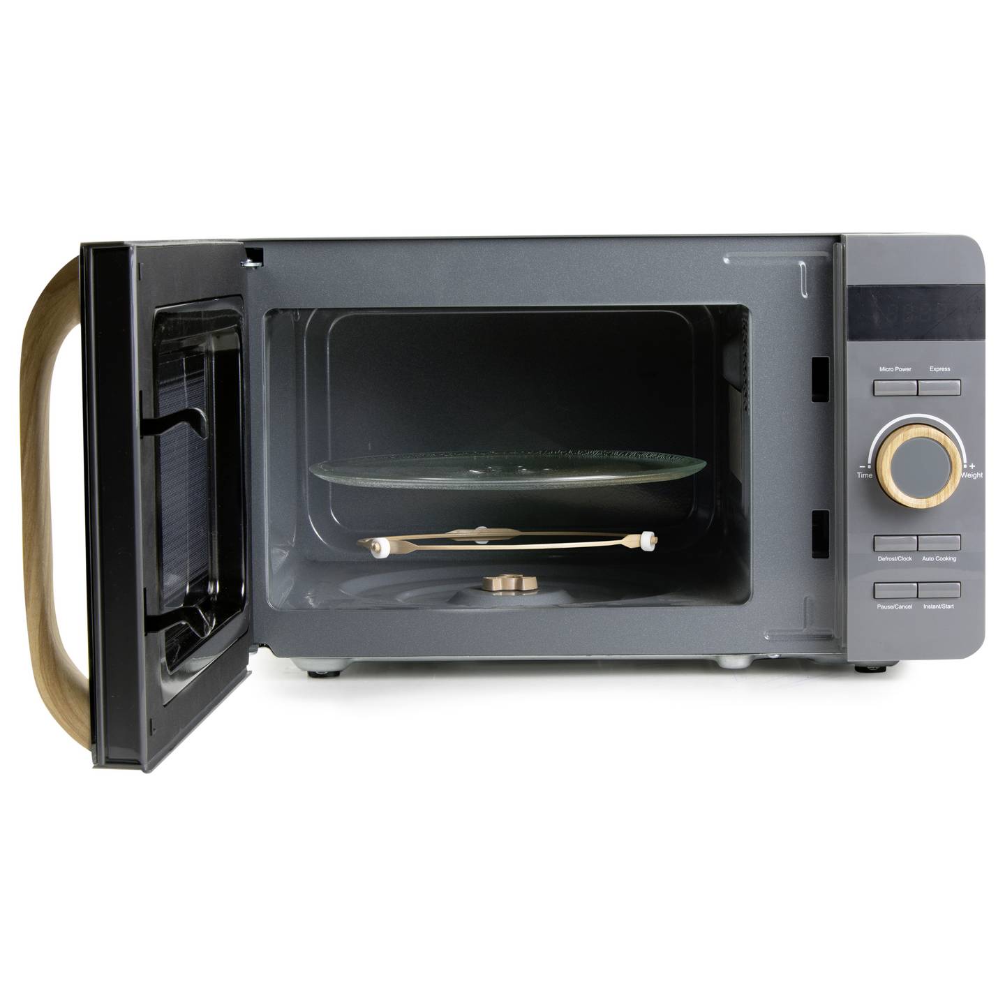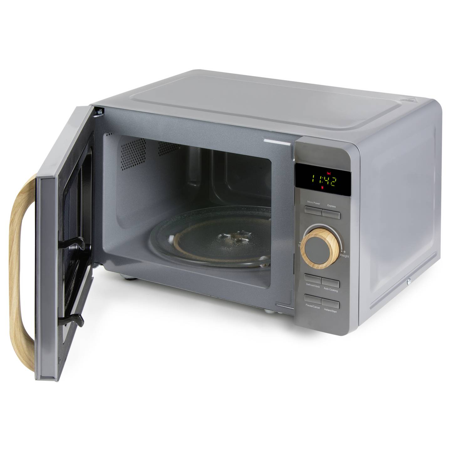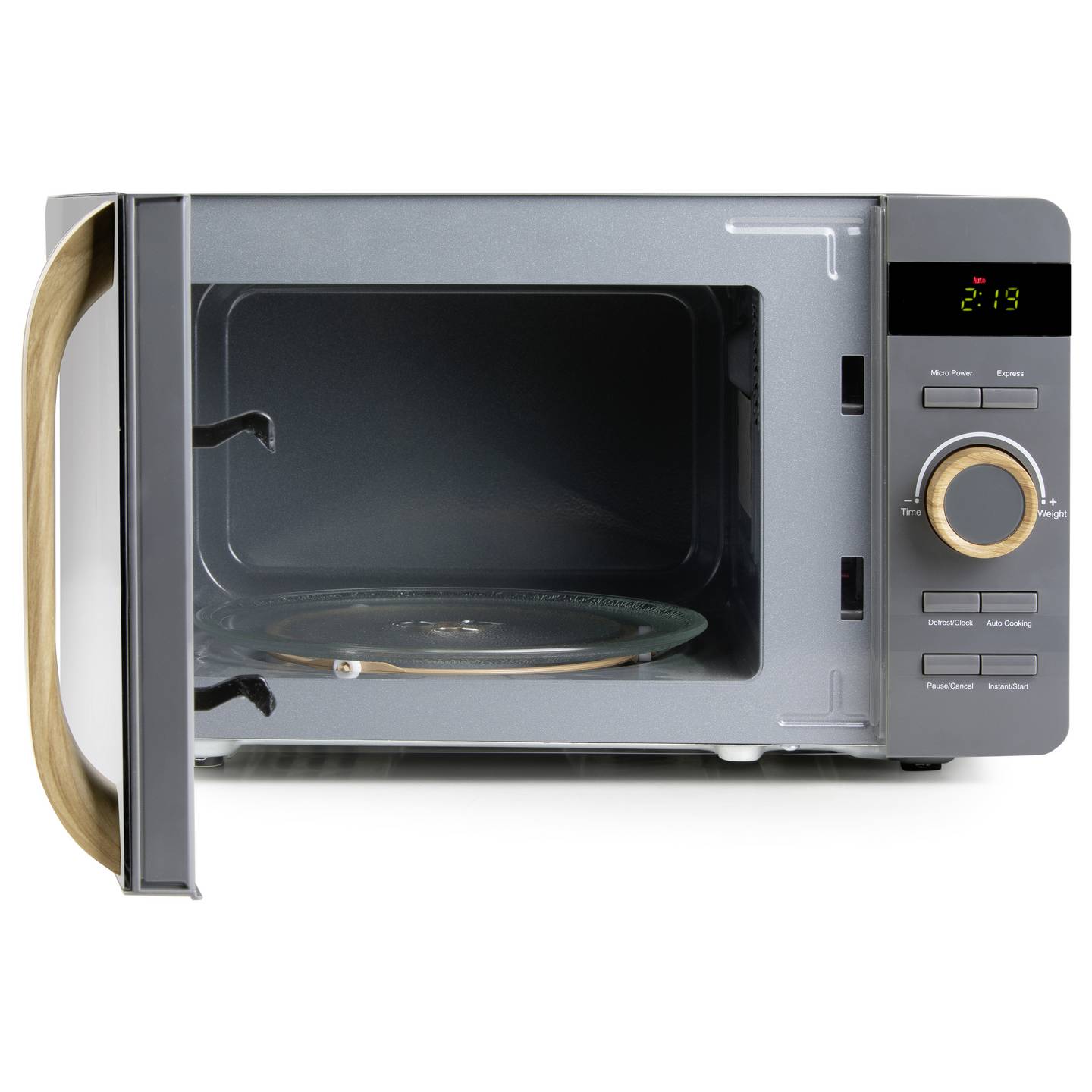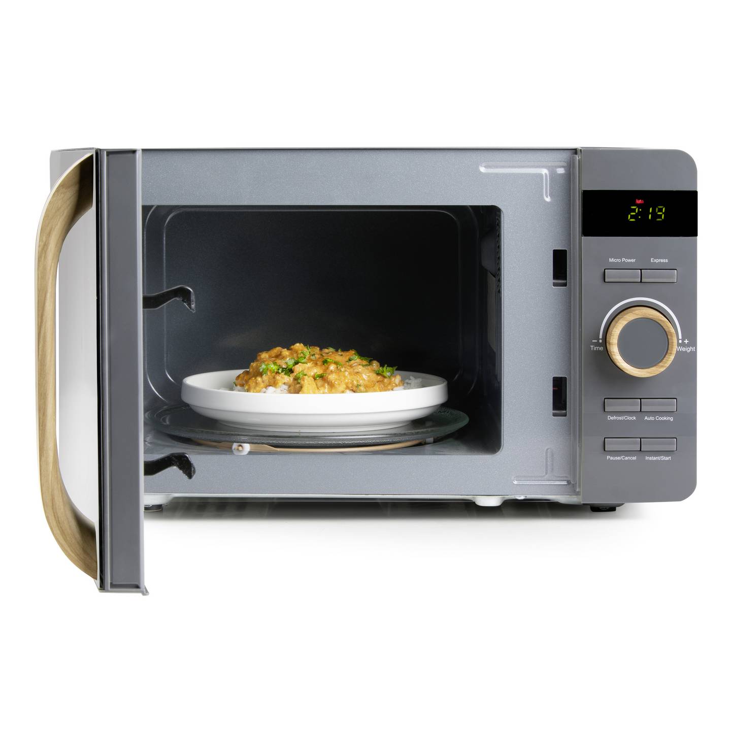 Kompakte 20‑Liter Mikrowelle mit Automatikprogrammen und Holzdesign