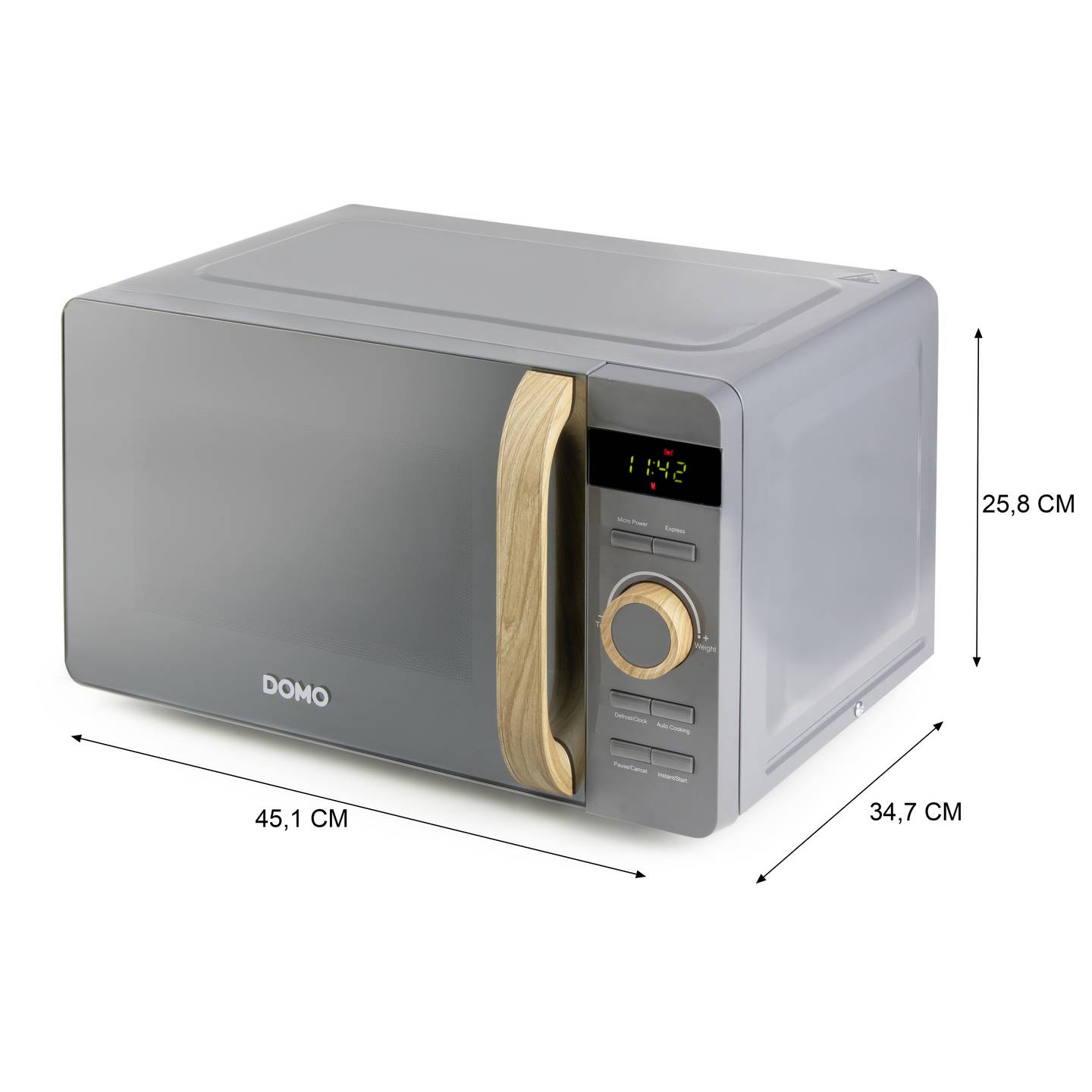 Die DOMO Mikrowelle DO3420 verbindet praktische Funktionen mit einem modernen Design für den Alltag in Ihrer Küche. Mit einem Garraum von 20 Litern und einer Leistung von 700 Watt eignet sie sich ideal zum schnellen Erwärmen, Auftauen und Zubereiten verschiedenster Gerichte. Die elegante Front mit verspiegelter Glastür und stilvollen Holzakzenten macht das Gerät zudem zu einem attraktiven Blickfang.