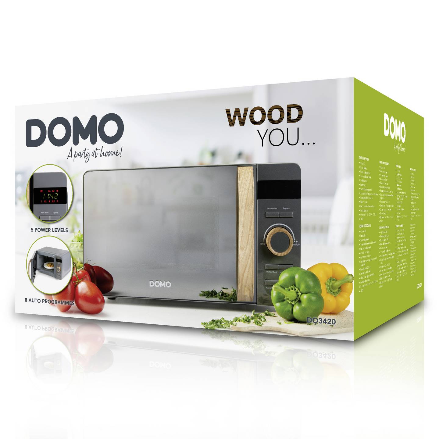 Die DOMO DO3420 Mikrowelle ist eine zuverlässige und benutzerfreundliche Lösung für die schnelle Zubereitung von Mahlzeiten im Alltag. Mit ihren acht integrierten Automatikprogrammen lassen sich verschiedene Gerichte besonders komfortabel zubereiten, während die Auftaufunktion das schonende Auftauen von Lebensmitteln ermöglicht. Dank der Mehrstufenfunktion können zwei Leistungsstufen innerhalb eines Garvorgangs kombiniert werden, was optimale Ergebnisse bei unterschiedlichen Speisen unterstützt.