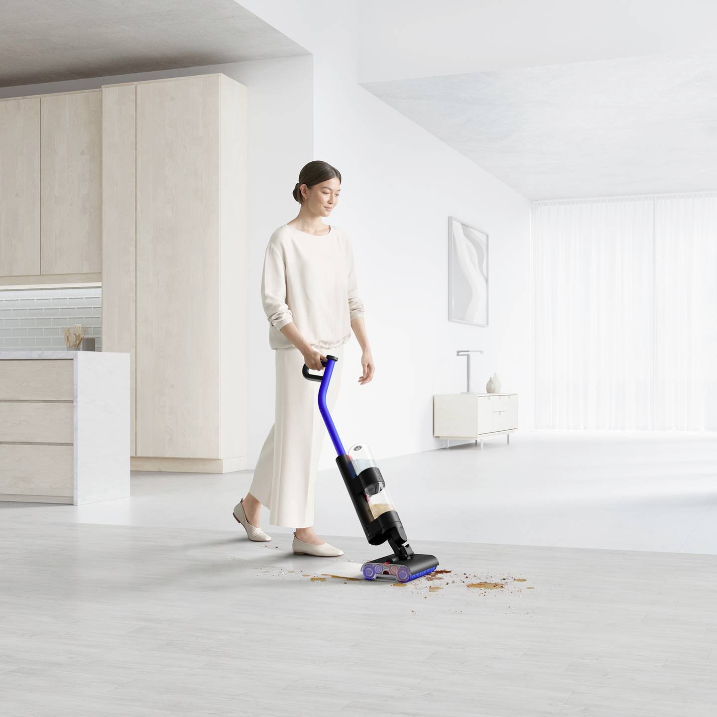 Der Dyson WashG1 ist ein moderner Hartbodenreiniger, der nasse Verschmutzungen und alltäglichen Schmutz gründlich von versiegelten Böden entfernt. Dank intelligenter Wasserverteilung, leistungsstarker Walzen und kabellosem Betrieb eignet er sich ideal für Haushalte mit Fliesen-, Stein-, Vinyl- oder versiegelten Holzböden. Das durchdachte System trennt sauberes und schmutziges Wasser zuverlässig und sorgt so für eine hygienische Reinigung.