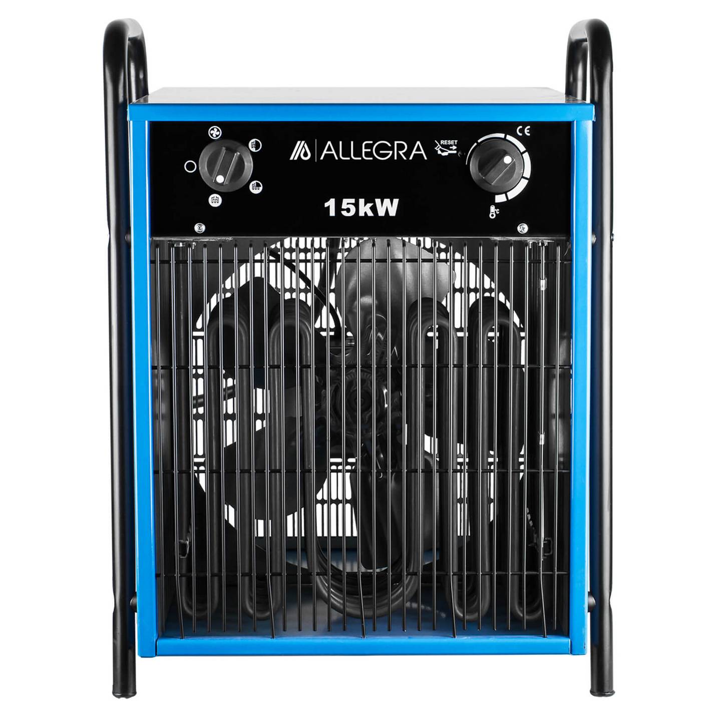 Der Elektro-Heizlüfter AB-H150 von Allegra sorgt mit bis zu 15 kW Heizleistung schnell und zuverlässig für angenehme Wärme in großen Räumen. Er eignet sich ideal für Werkstätten, Baustellen, Lagerhallen oder andere gewerbliche Einsatzbereiche. Dank mehrerer Heizstufen, integriertem Thermostat und robuster Bauweise bietet das Gerät eine effiziente und sichere Lösung für professionelle Heizanforderungen.