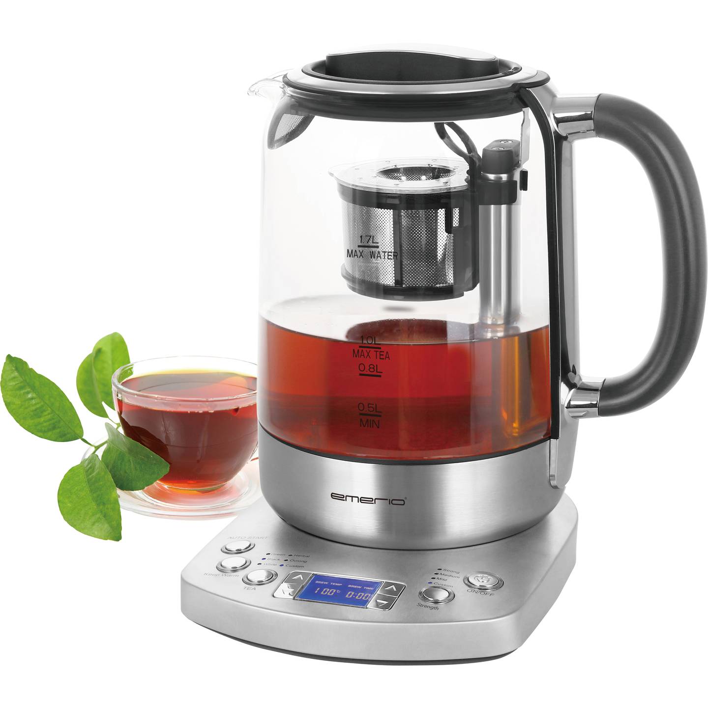 Der EMERIO WK-122248 ist ein moderner Wasserkocher mit integriertem Teesieb und praktischem Display. Dank hochwertigem Borosilikatglas, kabellosem Design und BPA-freien Materialien eignet er sich ideal für die schnelle Zubereitung von heißem Wasser oder aromatischem Tee. Die Kombination aus stilvollem Design in Silber und Schwarz sowie leistungsstarker Technik macht ihn zu einem praktischen Küchenhelfer im Alltag.