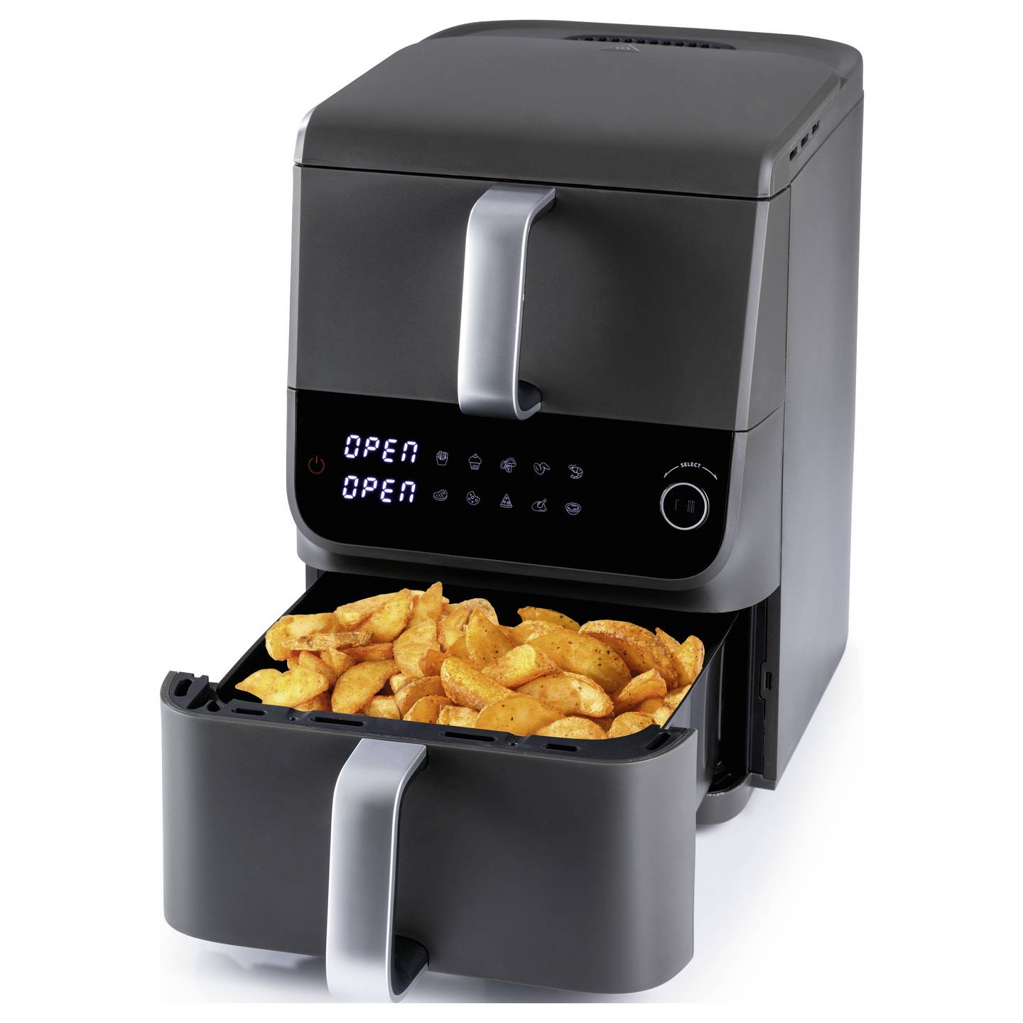 GOURMETmaxx Doppelkammer-Heißluftfritteuse mit 10 L Volumen und Touch-Display