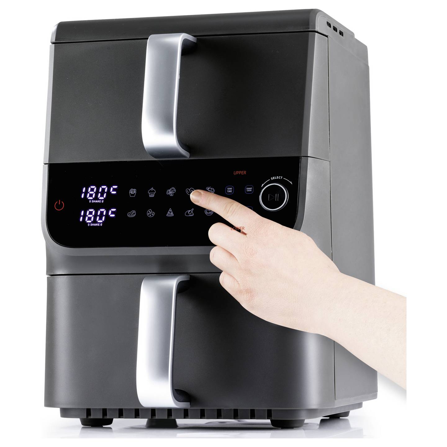 Über das intuitive LED-Touchdisplay wählst du bequem eines der 10 automatischen Programme für Pommes, Fleisch, Gemüse und mehr. Die praktische SYNC-Funktion ermöglicht es, unterschiedliche Garzeiten so zu koordinieren, dass alle Speisen gleichzeitig fertig sind. Zusätzlich erinnert dich die Shake-Reminder-Funktion daran, das Gargut für ein gleichmäßiges Ergebnis zu wenden. Die antihaftbeschichteten Körbe und Einlegeroste sind spülmaschinengeeignet und erleichtern die Reinigung nach dem Kochen erheblich.