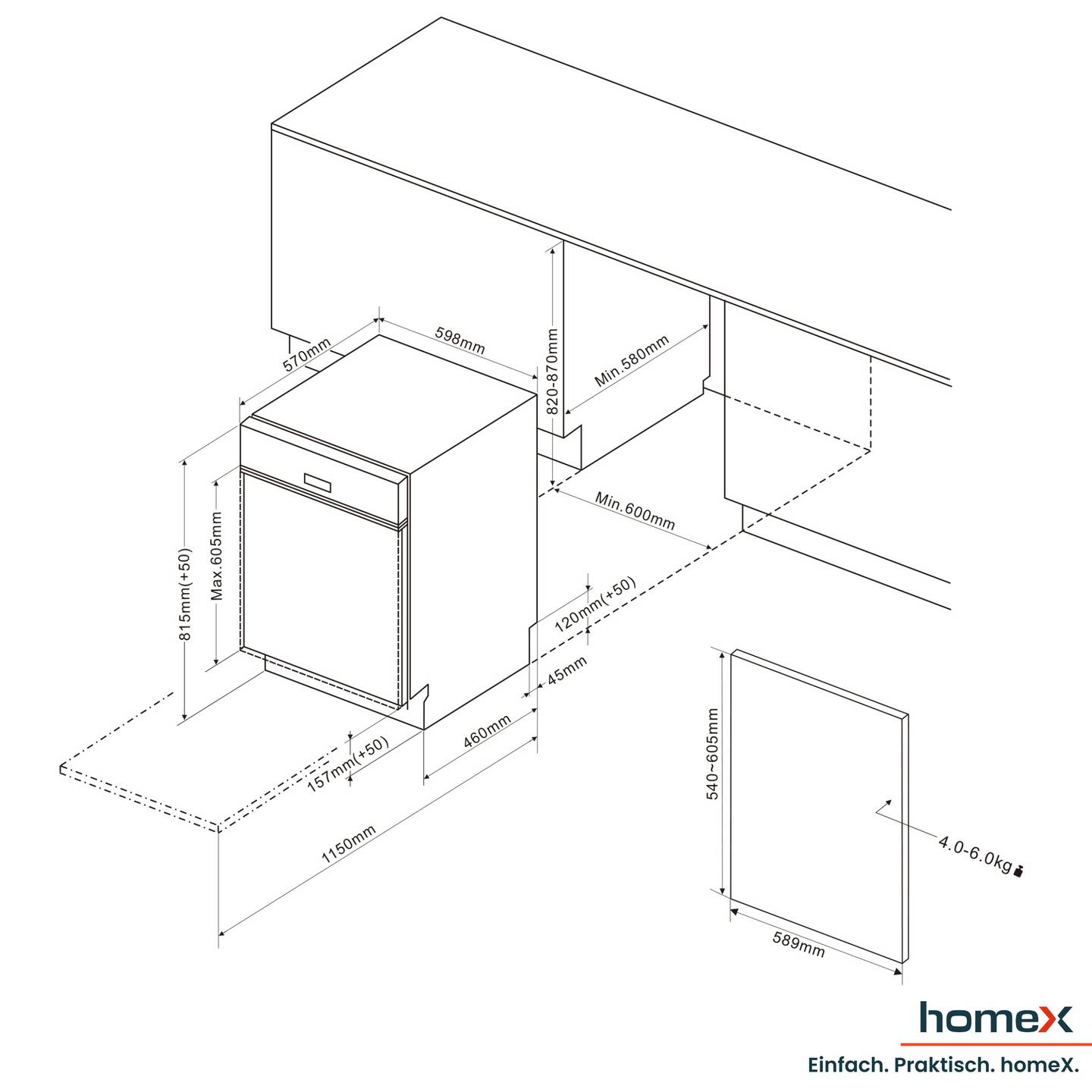 Der homeX Geschirrspüler vereint leistungsstarke Reinigung, leisen Betrieb und moderne Einbauoptik in einem zuverlässigen Küchengerät. Mit Platz für bis zu 14 Maßgedecke eignet er sich ideal für Familien, Haushalte mit viel Geschirr oder gesellige Abende mit Gästen. Dank intelligenter Programme, flexibler Innenraumgestaltung und komfortabler Funktionen sorgt er für sauberes Geschirr bei minimalem Aufwand.