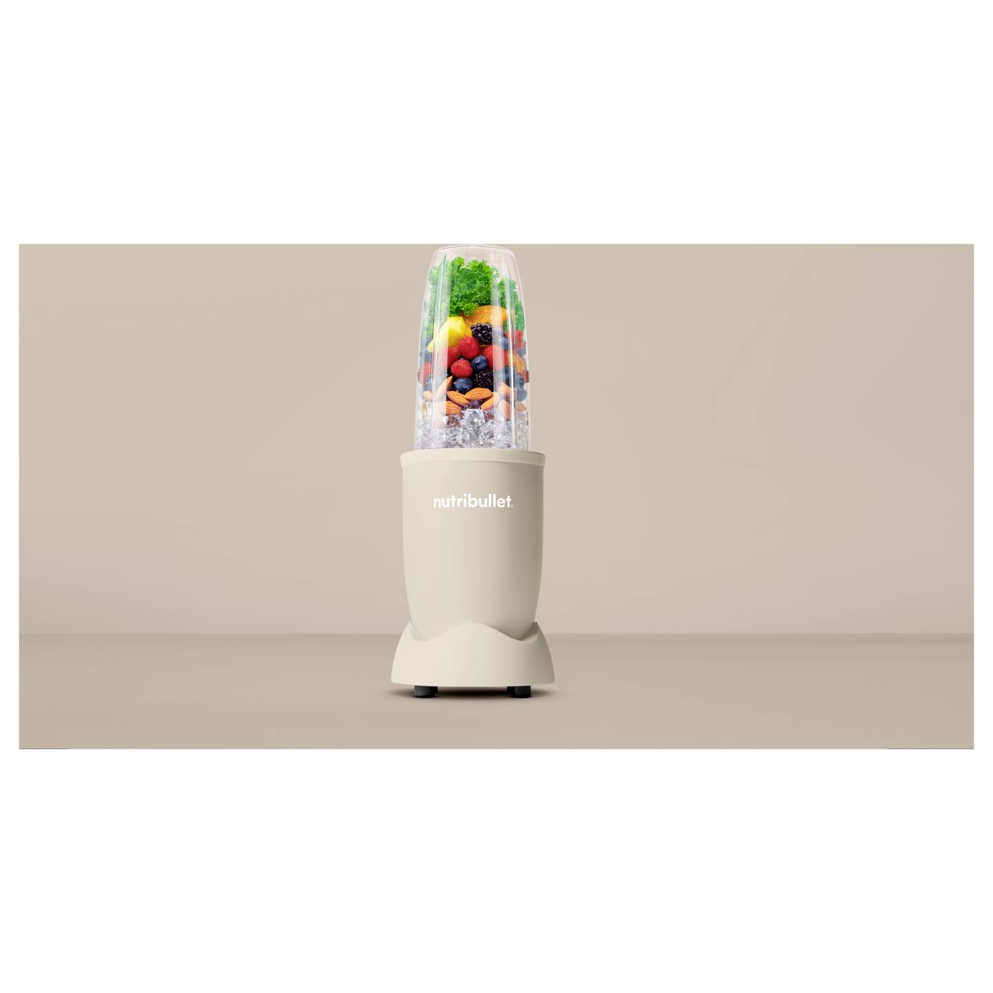 Der großzügige Mixbecher mit 925 ml Fassungsvermögen eignet sich perfekt für einzelne Portionen oder zum Mitnehmen. Gleichzeitig sorgt das kompakte Design dafür, dass der Mixer wenig Platz auf der Arbeitsfläche benötigt. Die matte Oberfläche in Beige verleiht dem Gerät eine moderne und elegante Optik, die sich harmonisch in jede Küche einfügt.