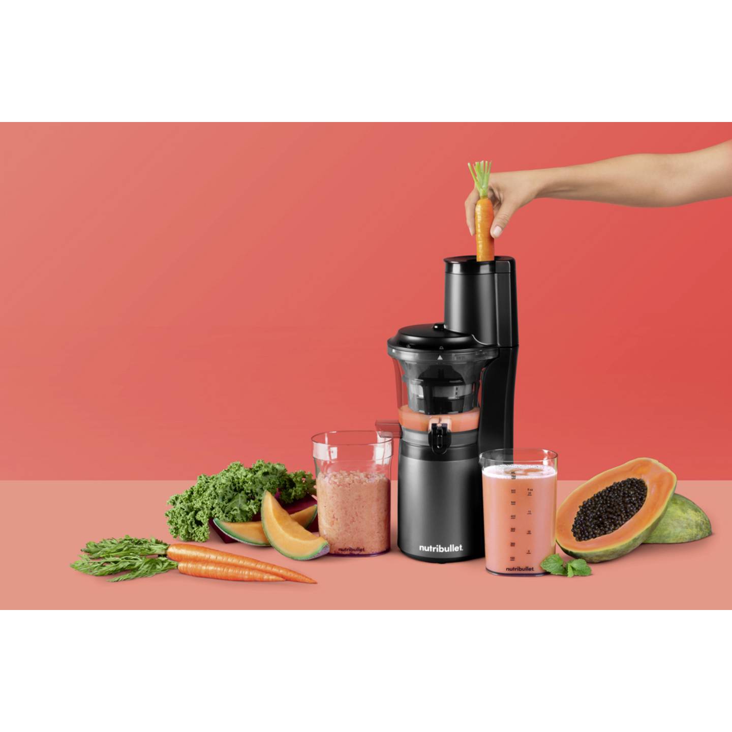 Der NUTRiBULLET NBJ500 ist ein kompakter, leistungsstarker Slow Juicer, der frische Säfte besonders schonend zubereitet. Durch die langsame Drehbewegung der Schneckenpresse werden Obst und Gemüse effizient ausgepresst, sodass möglichst viele Vitamine und Nährstoffe erhalten bleiben. Der großzügige Einfüllschacht erleichtert die Verarbeitung größerer Zutaten und spart Zeit bei der Vorbereitung. Gleichzeitig sorgt der leise Motor für eine angenehme Nutzung im Alltag. Die abnehmbaren, spülmaschinengeeigneten Komponenten ermöglichen eine unkomplizierte Reinigung und machen den Entsafter zu einem praktischen Begleiter für eine gesunde Ernährung.