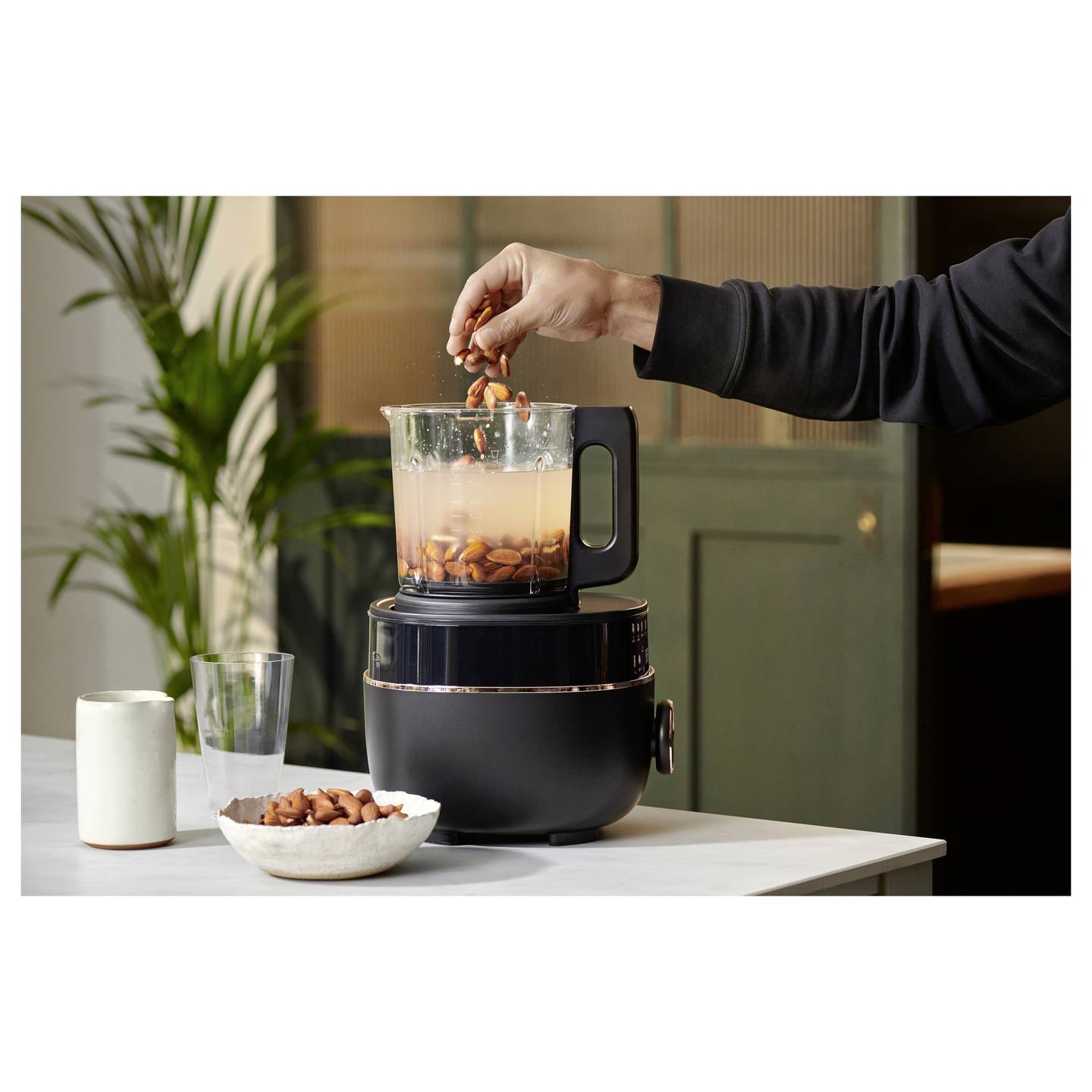 - Robuster Glasbehälter mit Geräuschschutzabdeckung für leiseren Betrieb