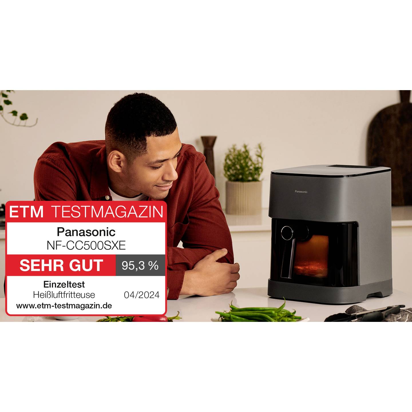 Panasonic Heißluftfritteuse mit Dampfzugabe und Sichtfenster – 5 Liter