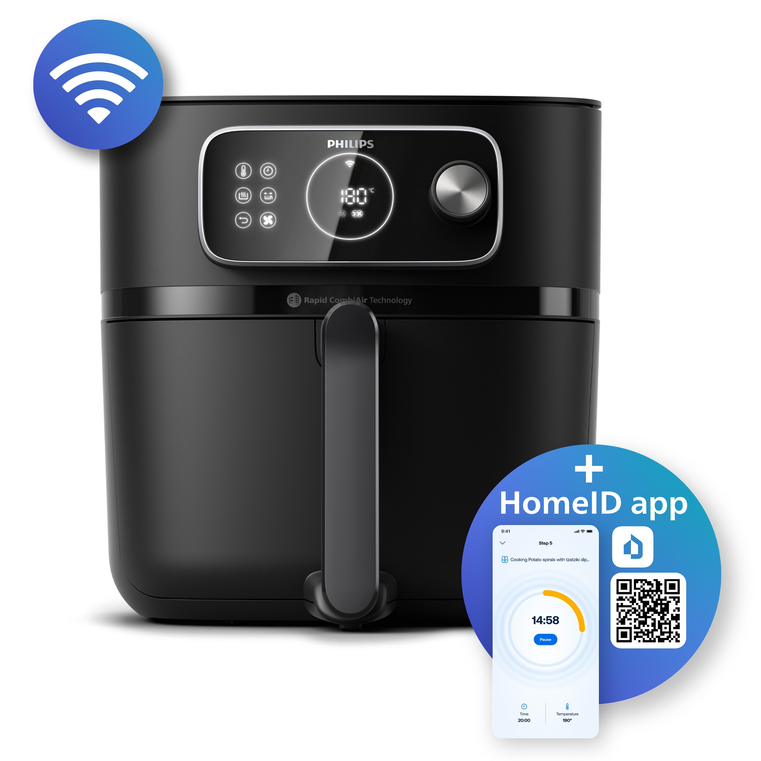 Bereiten Sie ohne Aufwand köstliche Mahlzeiten zu, indem Sie Ihre Airfryer-Combi mit der HomeID-App verbinden, die leckere, inspirierende und gesunde Rezepte aus der ganzen Welt enthält. Mit einer Schritt-für-Schritt-Anleitung und den genauen Einstellungen können Sie die Rezepte ganz einfach nachkochen und sogar Ihre eigenen Rezepte hochladen!