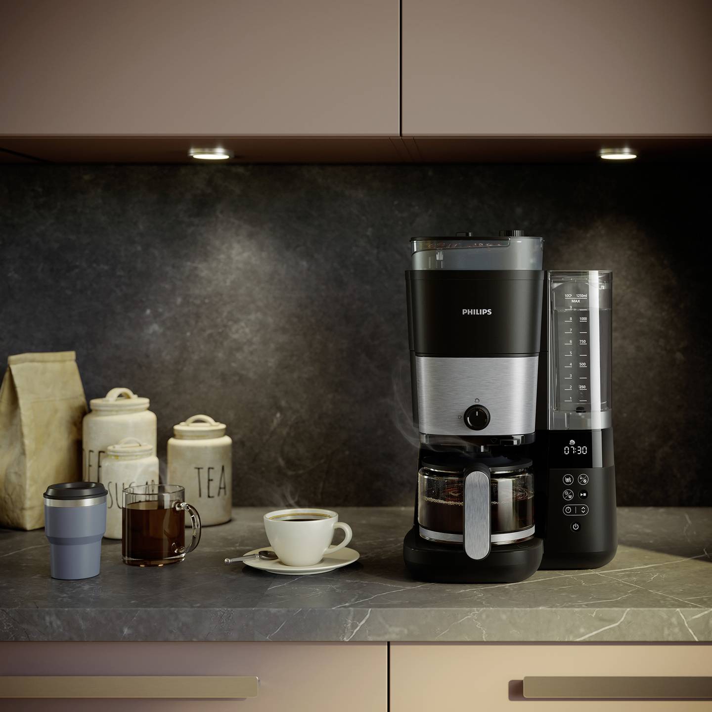 Diese Kaffeemaschine von Philips kombiniert modernes Design mit intelligenter Technik für perfekten Filterkaffee im Alltag. Das integrierte Mahlwerk sorgt für frisch gemahlene Bohnen bei jeder Zubereitung, während praktische Funktionen wie Timer und Warmhaltefunktion maximalen Komfort bieten. Ideal für Kaffeeliebhaber, die Wert auf frisches Aroma und einfache Bedienung legen.