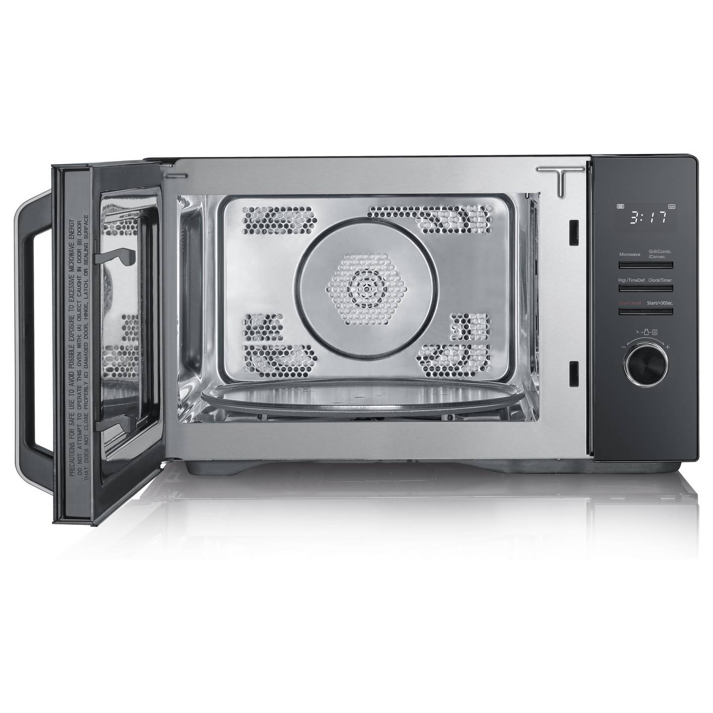 - Drehteller mit 31,5 cm Durchmesser für gleichmäßiges Erwärmen