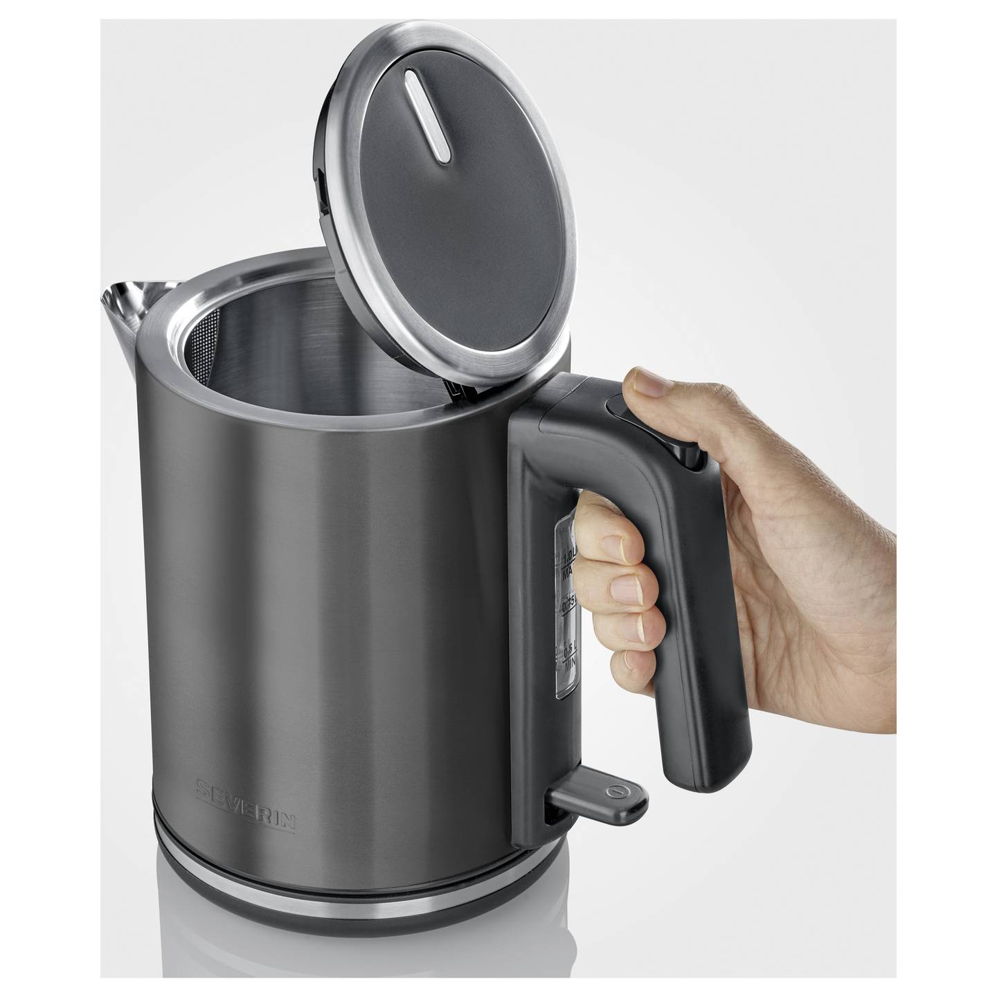 Die praktische Deckelöffnung per Knopfdruck erleichtert das Befüllen, während das kompakte Fassungsvermögen von einem Liter perfekt für den täglichen Gebrauch geeignet ist. Hochwertige Materialien wie Edelstahl und robustes Kunststoffgehäuse sorgen für Langlebigkeit und eine moderne Optik. Mit seinem platzsparenden Format passt der Wasserkocher problemlos in jede Küche und überzeugt durch zuverlässige Leistung.