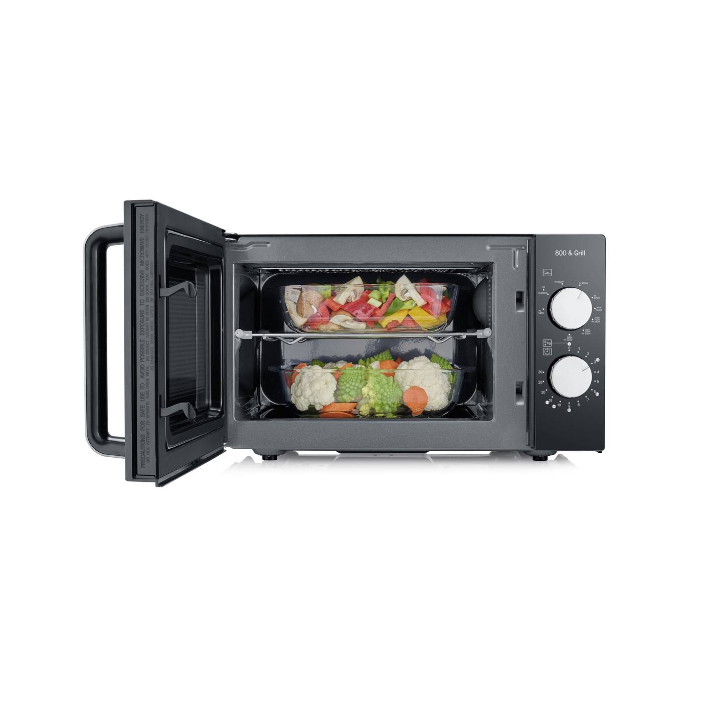 - Leistungsstarke Mikrowelle mit 800 W und zusätzlicher 1000 W Grillfunktion
