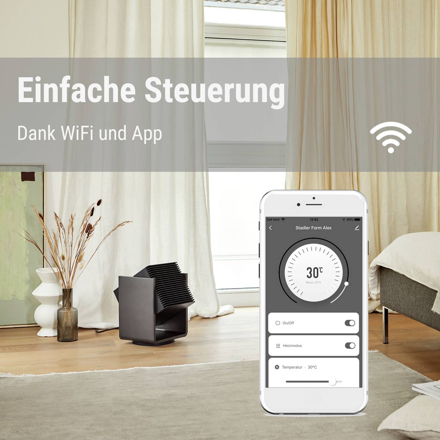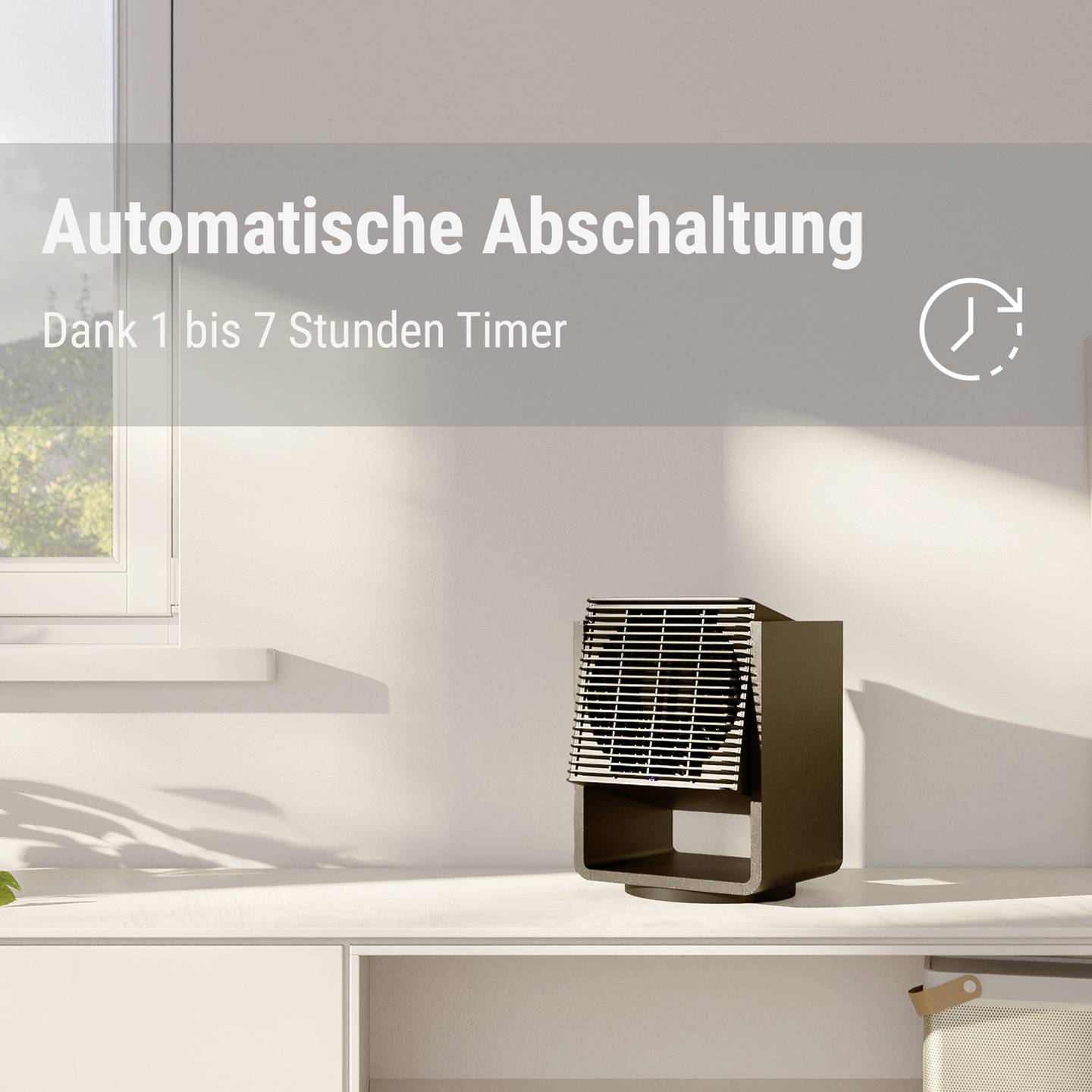 - Vier Ventilatorstufen und zwei Heizstufen für flexible Nutzung