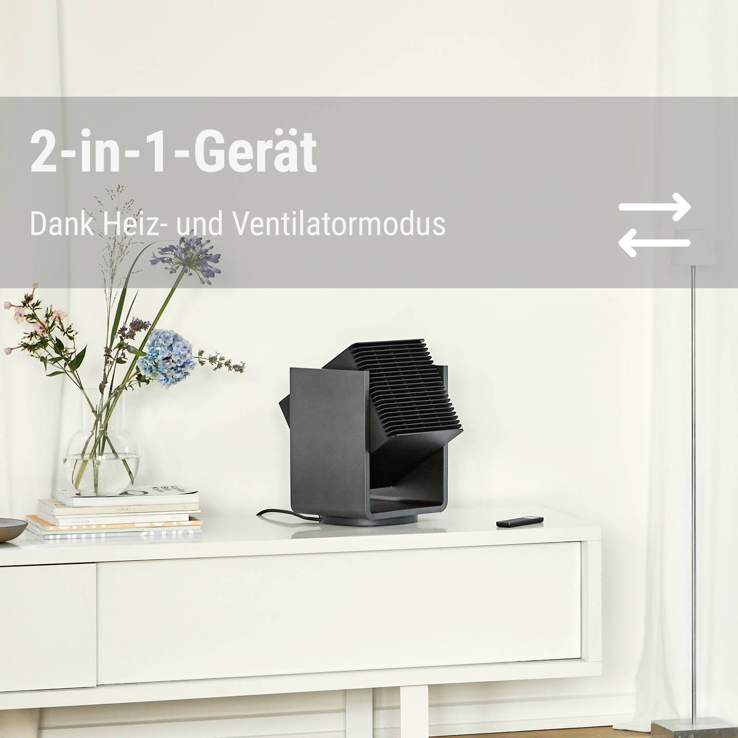 - 2‑in‑1 Gerät: Heizlüfter und Ventilator in einem