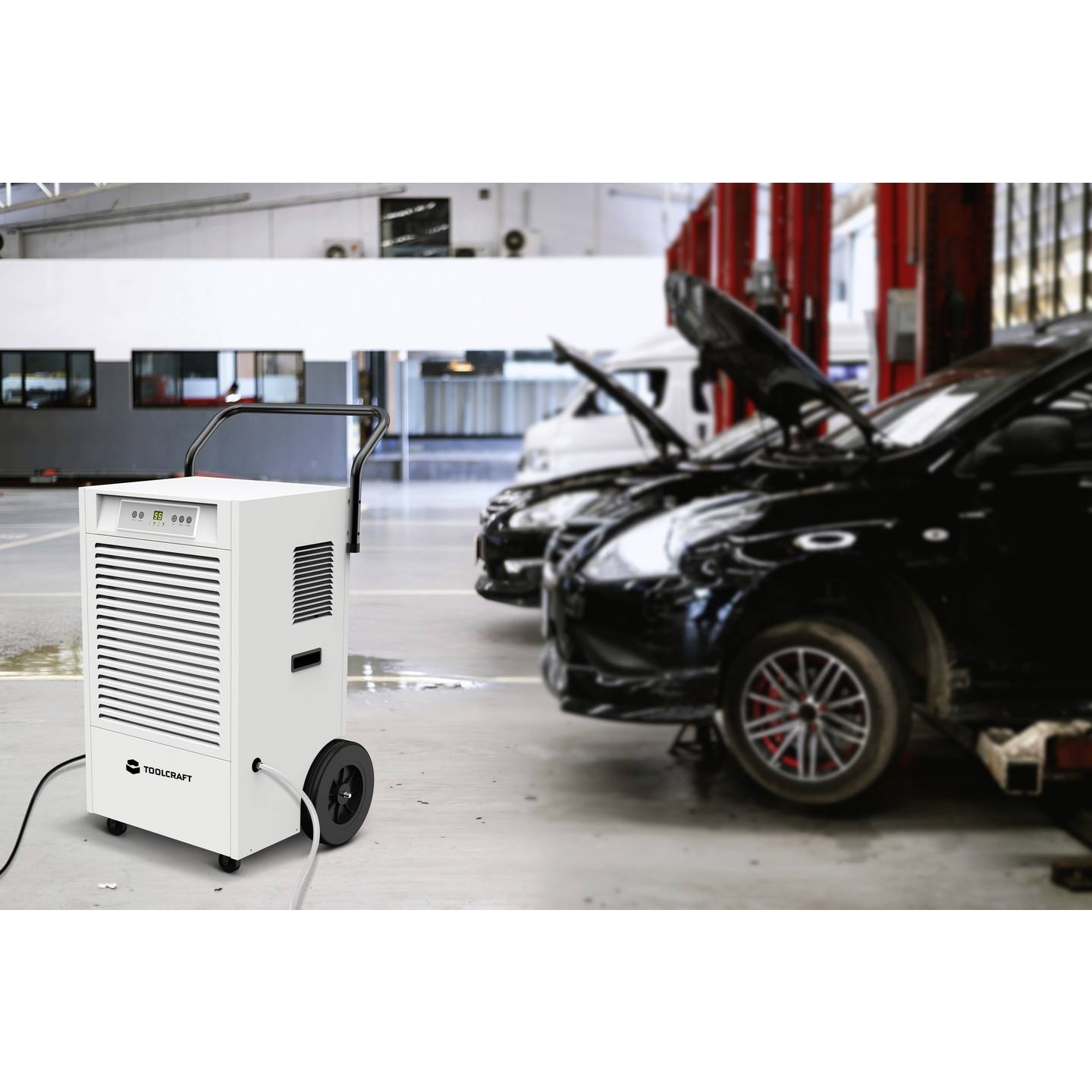 Der TOOLCRAFT Luftentfeuchter ist die ideale Lösung zur effektiven Entfeuchtung großer Räume wie Keller, Werkstätten, Lagerflächen oder nach Wasserschäden. Mit einer beeindruckenden Entfeuchtungsleistung von bis zu 90 Litern pro Tag sorgt das Gerät zuverlässig für ein gesundes Raumklima. Dank komfortabler Bedienung, hoher Leistung und robuster Bauweise eignet sich der Luftentfeuchter besonders für anspruchsvolle Einsätze.