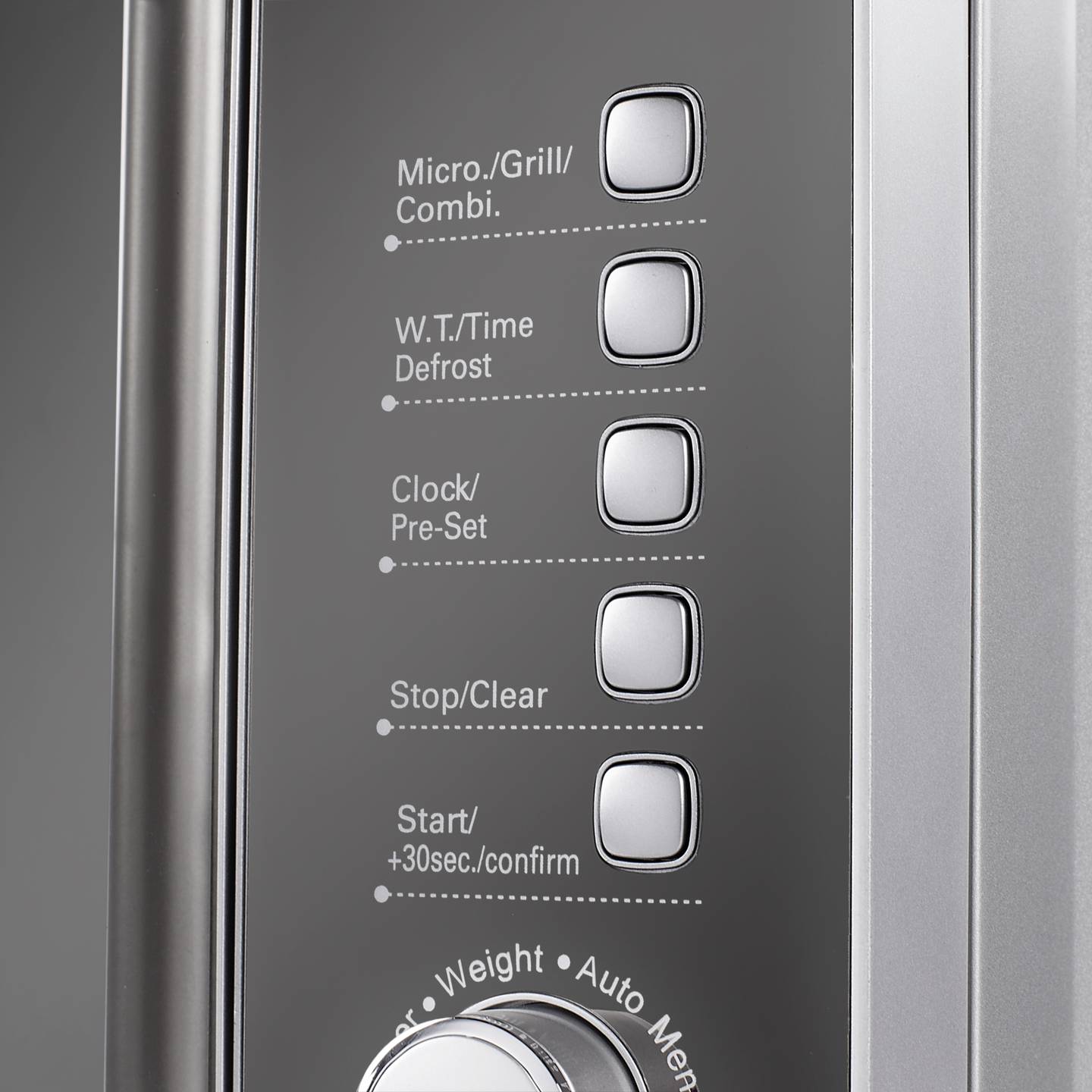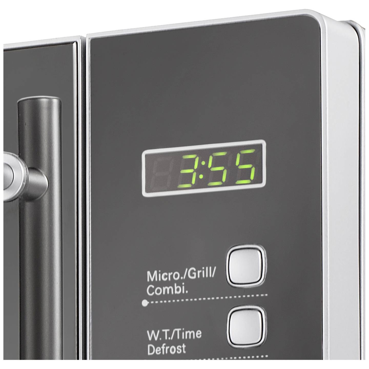 Acht voreingestellte Programme erleichtern die Zubereitung verschiedener Gerichte und sorgen für optimale Ergebnisse auf Knopfdruck. Über das übersichtliche Display und den einstellbaren Timer mit Signalton behalten Sie jederzeit die Kontrolle über den Garvorgang. Mit ihrem 20-Liter-Garraum bietet die Mikrowelle ausreichend Platz für alltägliche Mahlzeiten, während das kompakte Gehäuse perfekt in kleinere Küchen passt. Die elegante Spiegelglastür in Silber verleiht dem Gerät zudem eine moderne und hochwertige Optik.