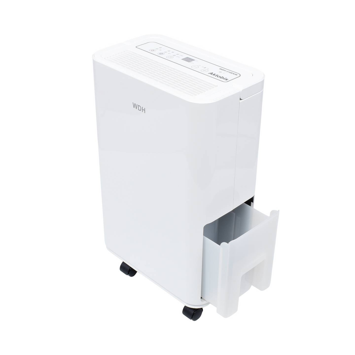 Besonders komfortabel ist die moderne App-Steuerung, mit der sich der Luftentfeuchter bequem aus der Ferne bedienen lässt. Zusätzlich sorgt die Timer-Funktion dafür, dass der Betrieb flexibel an den Tagesablauf angepasst werden kann. Dank der automatischen Defrost-Funktion arbeitet das Gerät auch bei niedrigeren Temperaturen zuverlässig. Der großzügige Wassertank sowie die kompakte Bauweise machen den WDH-310EKW zu einem praktischen Helfer für dauerhaft trockene und angenehme Raumluft.