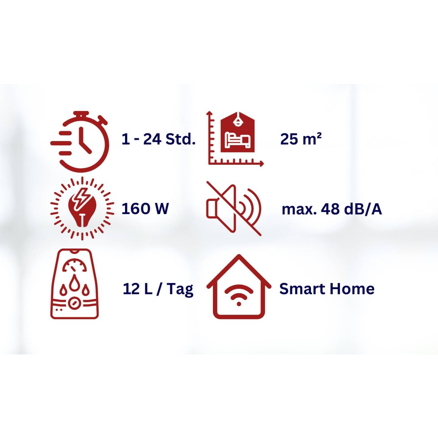 - Entfeuchtungsleistung von bis zu 12 Litern pro Tag